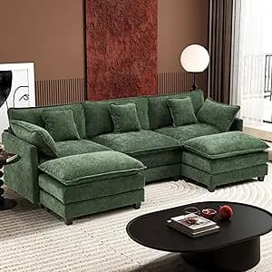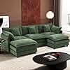 Ihanherry 111.4" U Shaped Modern Sofa Modular Sectional Cloud Couch with 2 Ottoman, 5-Seat Chenille Deep Seat Sofa with Pillow for Living Room, Bedroom and Apartment, Green