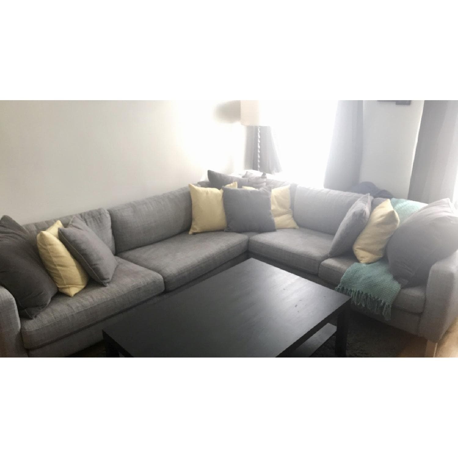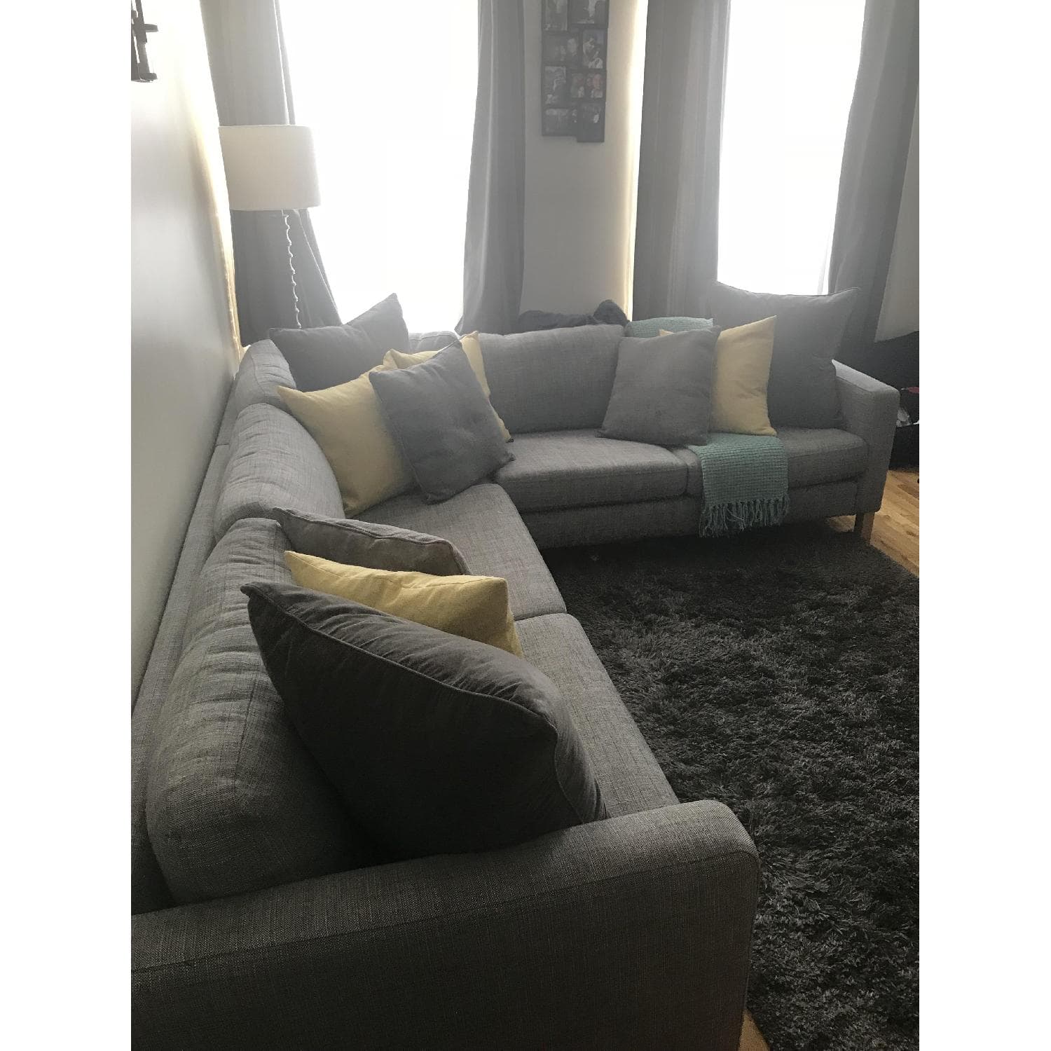 Used (normal wear) IKEA Karlstad sectional couch in Isunda Gray. (Discontinued in 2015). Great condition. Fits up to 7 people sitting or 2 for sleeping. Slip covers are removable for washing. Purchased for $1,199. Assembled size Min. depth: 36 5/8 " (93 cm) Max. depth: 62 1/4 " (158 cm) Width right: 141 " (358 cm) Width left: 94 1/2 " (240 cm) Height: 31 1/2 " (80 cm) Seat height: 17 3/4 " (45 cm) Key features A range of coordinated covers makes it easy for you to give your furniture a new look. The cover is easy to keep clean as it is removable. Seat cushions filled with high resilience foam and polyester fiber wadding provides great seating comfort. The chaise has an adjustable backrest with one sitting position and two relaxing positions. Removable armrests make it easy to convert the corner sofa and choose whether you want the longer section on the right or left side.