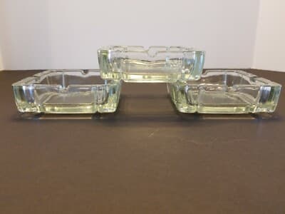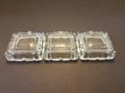 Vintage Set of 3 Thick Glass Square Ashtray 1960s Cube Design Mid Century