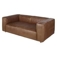 Sofá de 3/4 lugares em couro castanho Neo John | Maisons du Monde