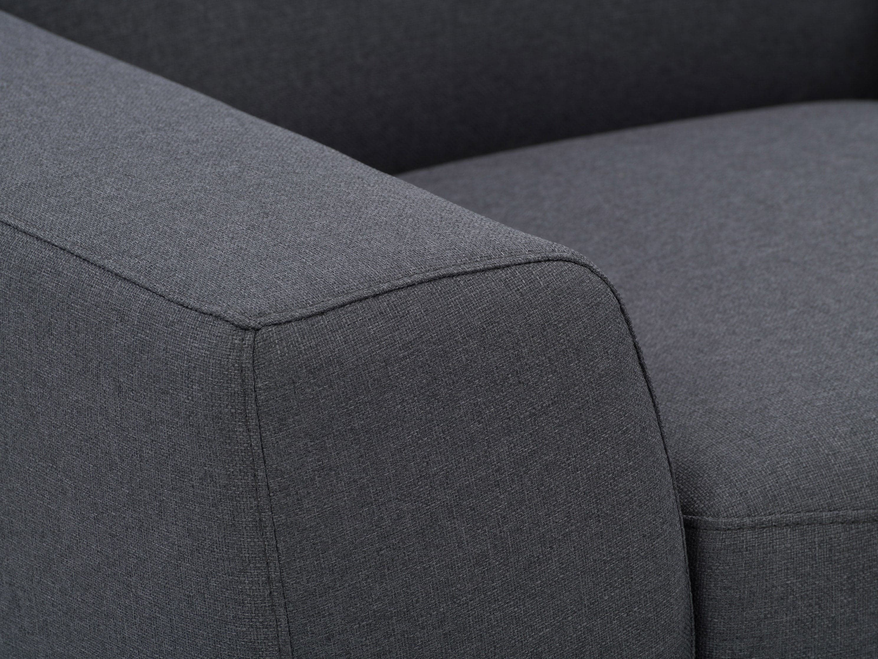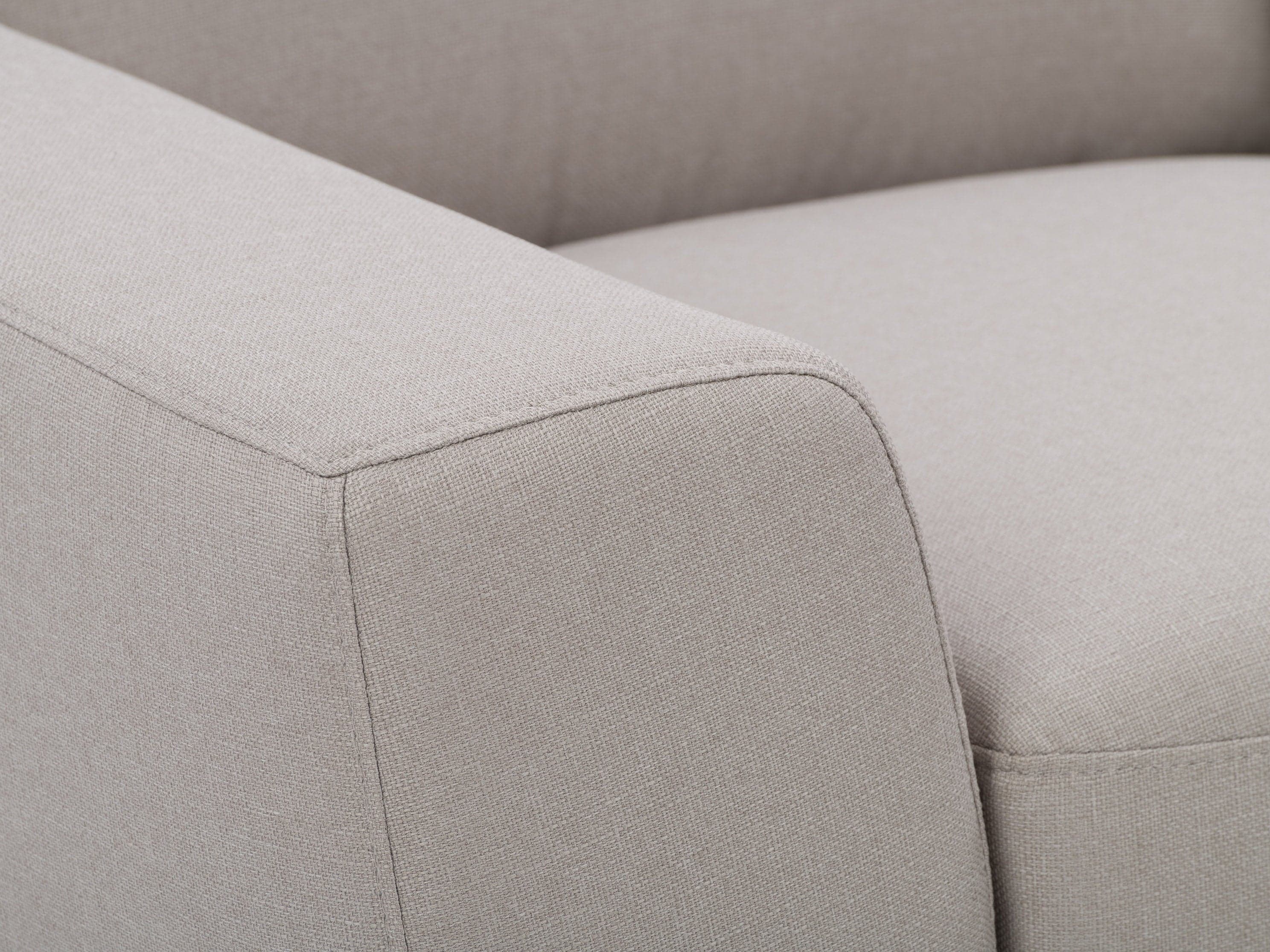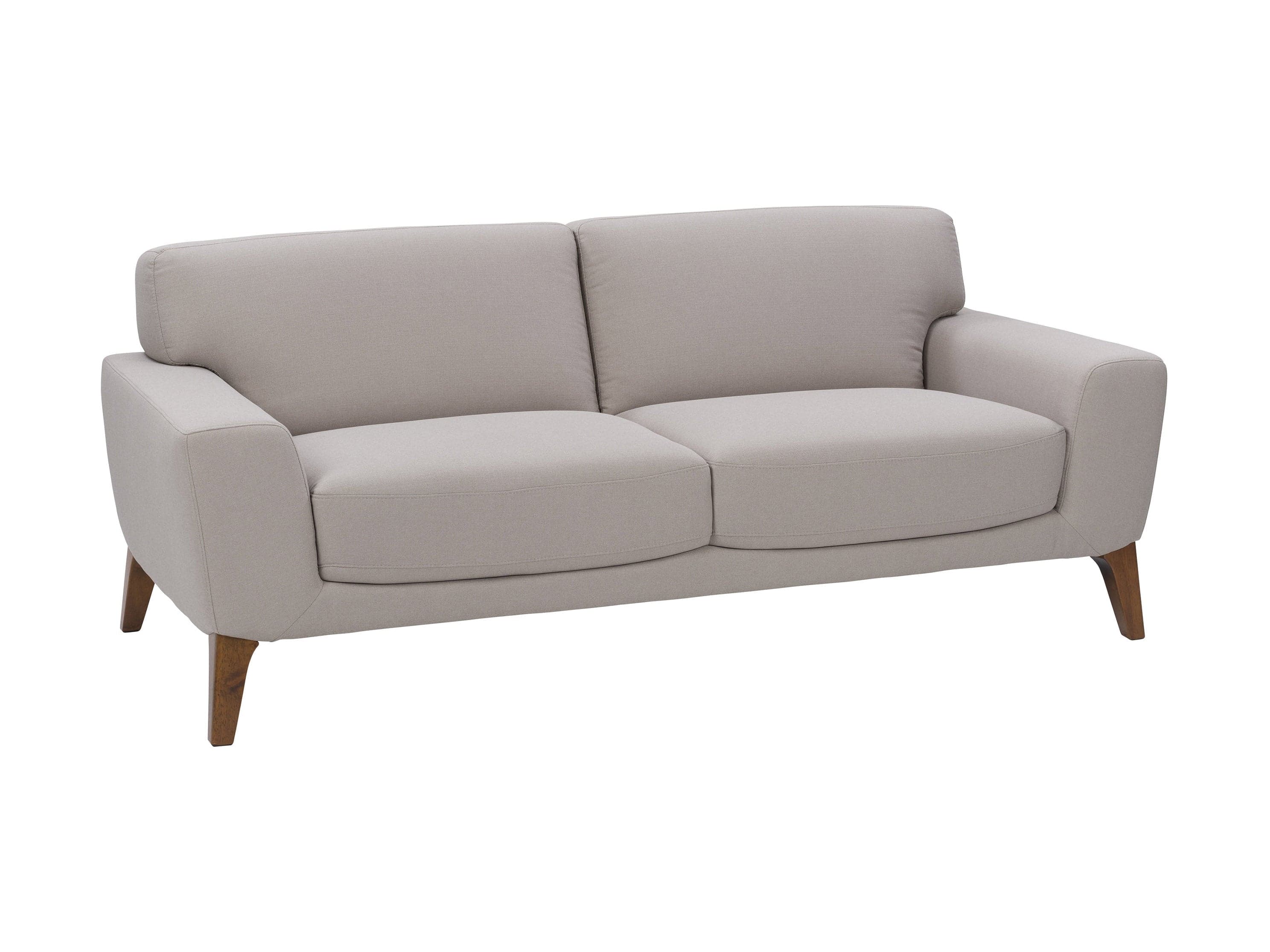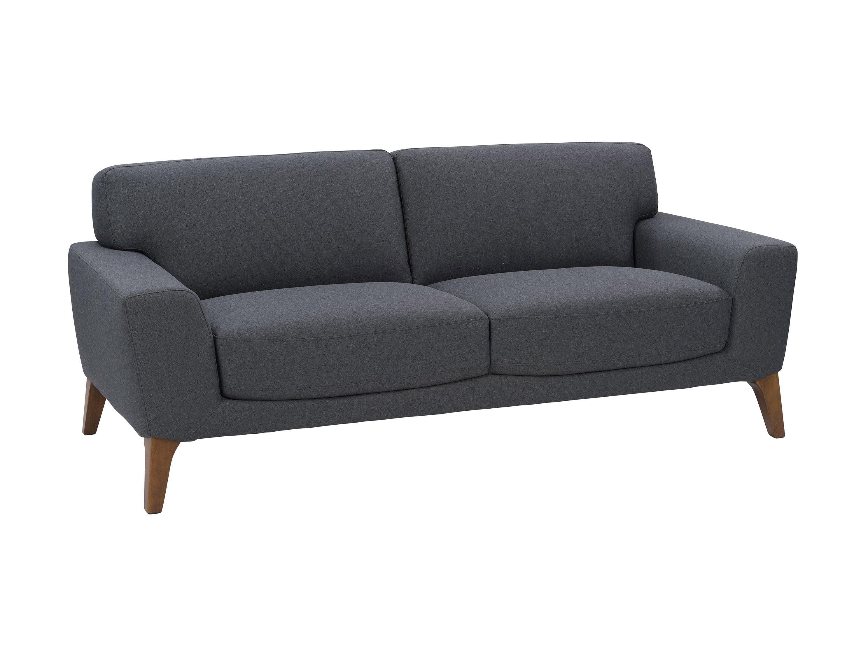 Add a clean and contemporary feel to your space. This 3 seater sofa is comfortable and trendy with its oversized armrests and solid wood legs. Upholstered in a soft, high-grade, durable fabric. This is the perfect modern couch for any living or family room.