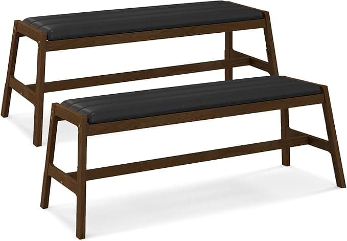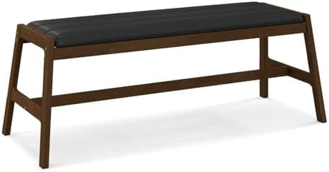 Indulge in luxurious comfort and chic style! The dining bench boasts 50" length, which can accommodate 2 individuals comfortably. The versatile wooden bench can serve as a comfortable seat in your home, hallway or office. Gifted from nature, the end of bed bench with solid rubber wood frame combines durability and stability, ensuring years of reliable service. Moreover, the reinforced H-shaped frame further increases sturdiness. The comfortable table bench boasts a foam padded seat cushion enveloped in skin-friendly PVC leather, offering a sumptuous seating experience, ideal for extended gatherings. Additionally, the fusion of a warm walnut wood finish with sleek black faux leather upholstery exudes a timeless elegance that effortlessly harmonizes with diverse decor themes.