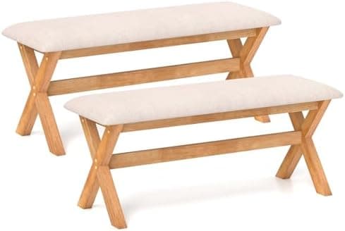 Giantex Upholstered Wood Dining Bench of 2, 50" Entryway Bench w/Padded Seat & Solid Rubber Wood Frame, Rectangular Ottoman Bench, End of Bed Bench, Dining Room Bench for Hallway, Bedroom