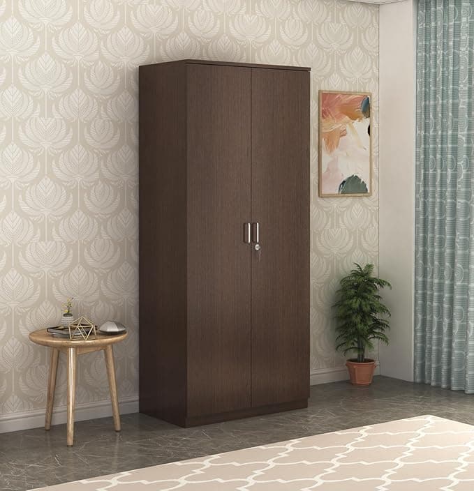 Modern Nest Engineered Wood Wardrobe | Wooden Almirah for Clothes | Cupboard for Clothes 2 Door Almirah with Hanging Space 1 Drawer, Without Mirror 17mm Particle Board (Walnut Finish 2.5x6 ft)