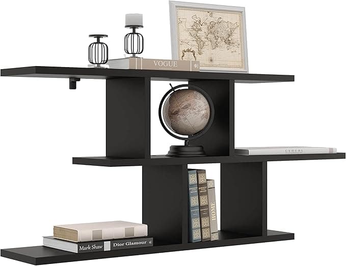 KUBUTKU Decorative Wall Shelf with 2 Shelves 100 x 45 x 18 cm Scandinavian Design Modern Living Room Kitchen Office Bedroom Bathroom Bookcase (Black)