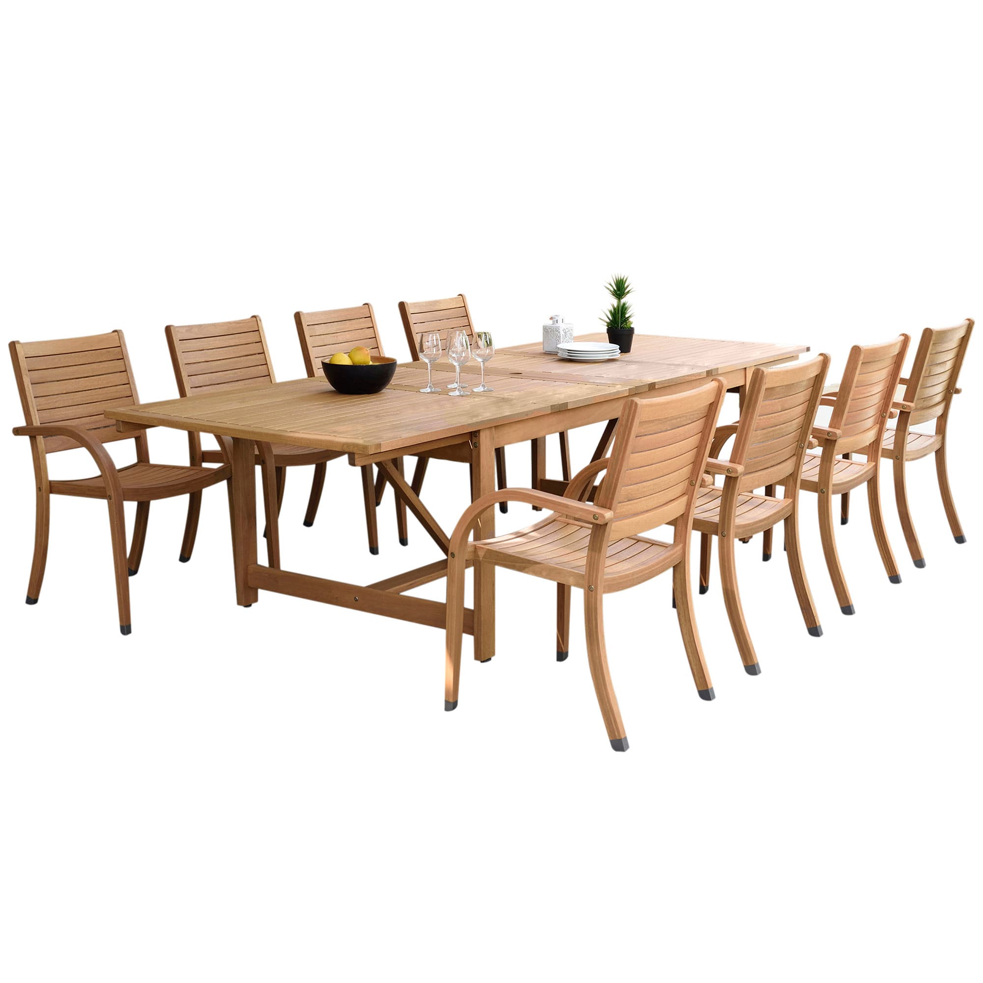 Branwyn 9-Pc Rectangular Extension Outdoor Eucalyptus Dining Set - Natural - Brown