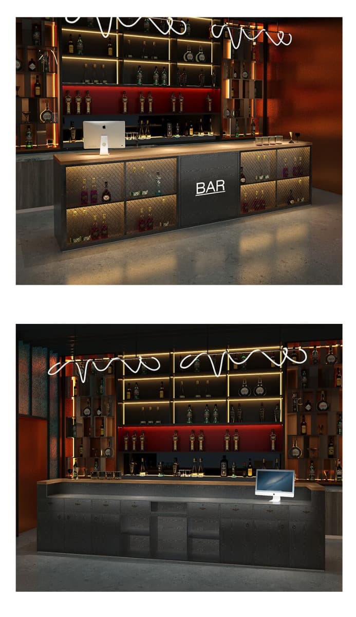 A wonderful bar counter needs a good appearance, good size, good light, and layout. We all know that the bar counter is very normal for a food shop, the place is where customers can usually reach out to. So we need to build a wonderful reception desk and leave a good impression on it.