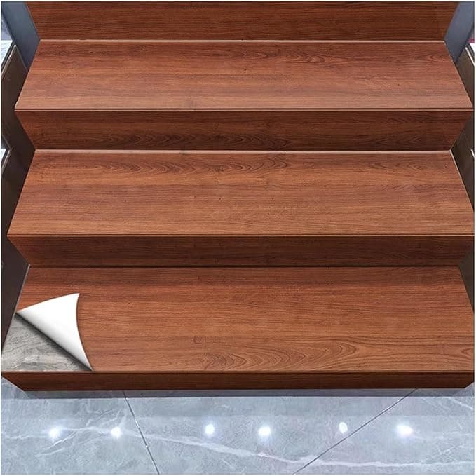 Vintage Wood Grain Stair Stickers Decals Self-Adhesive,Refurbished PVC Staircase Decor Decals,Rustic Wood Contact Paper Roll ,Stair Steps Stickers Decals for Home Kitchen Office Decor. Product Specifications: Product Name: Peel and Stick Stair Treads Riser Stickers. Material: PVC.