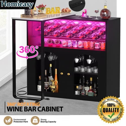 44'' Bar Cabinet w/ LED Lights Wine Liquor Storage Display Home Sideboard Buffe