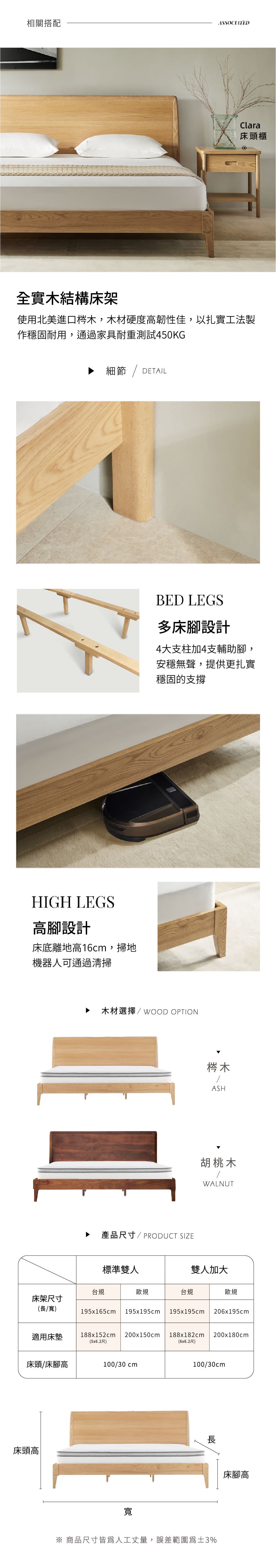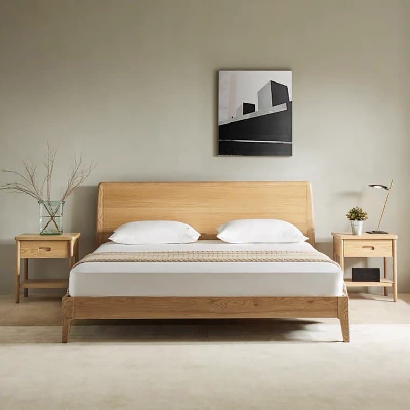 Nordic log bed, fresh and simple style, without unnecessary lines and gorgeous decoration. Made of natural and rustic North American ash wood, it creates a warm and quiet bedroom space. The bed frame is available in two sizes, table standard and European standard.