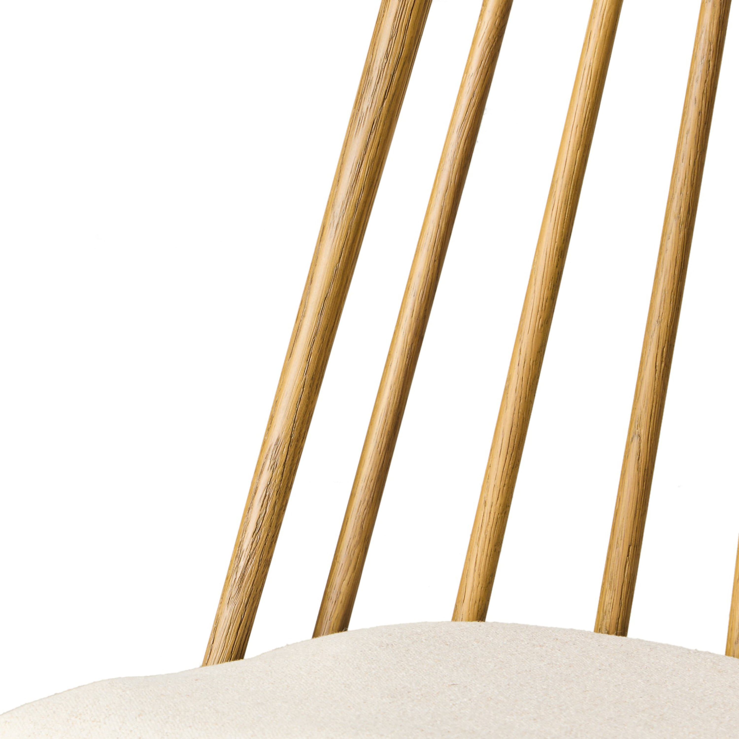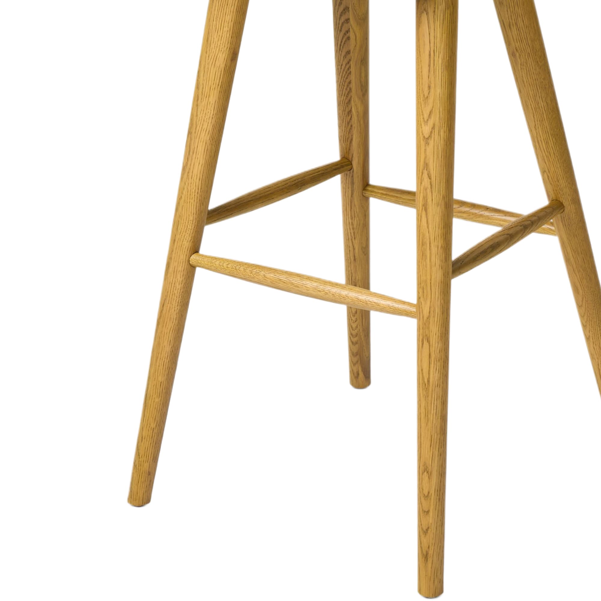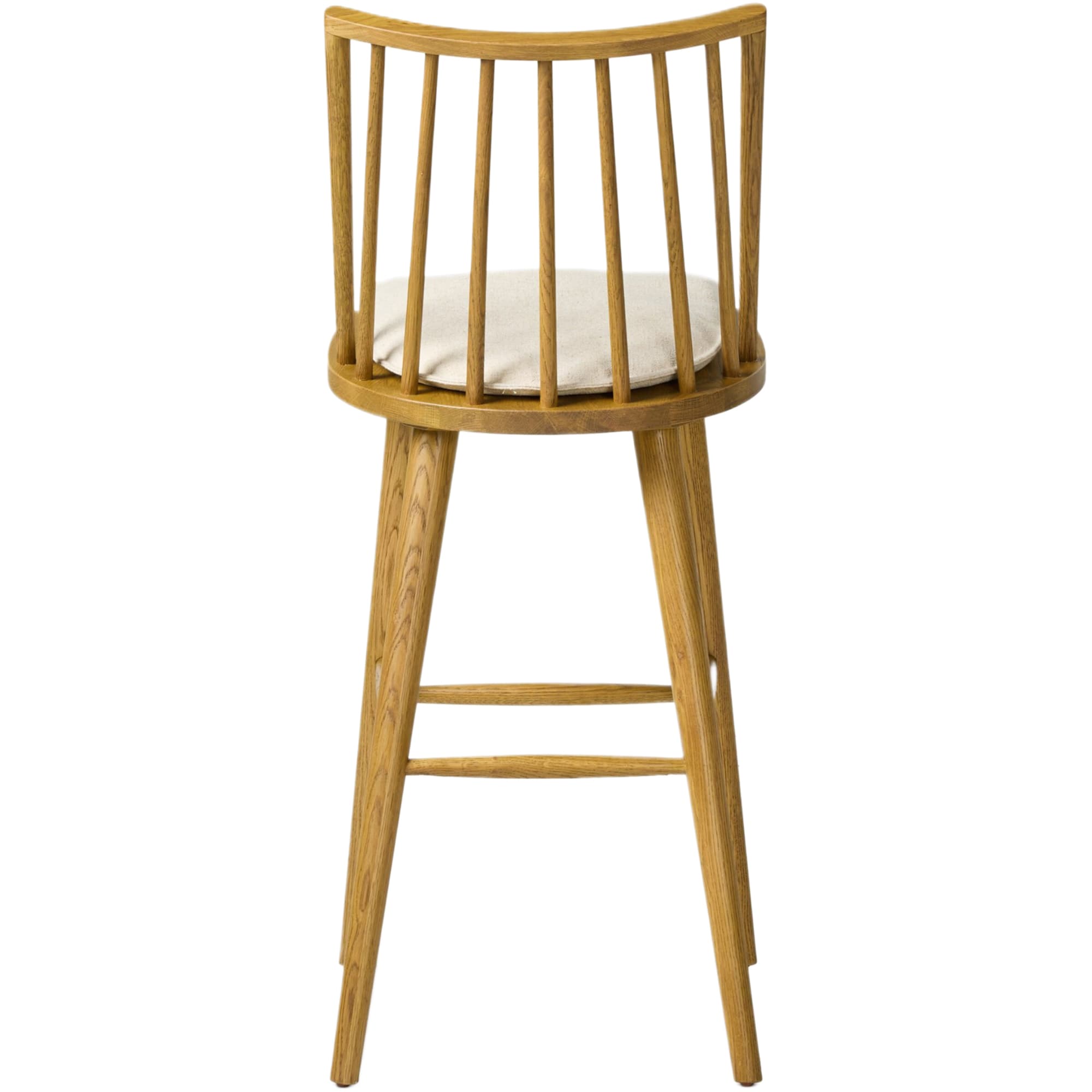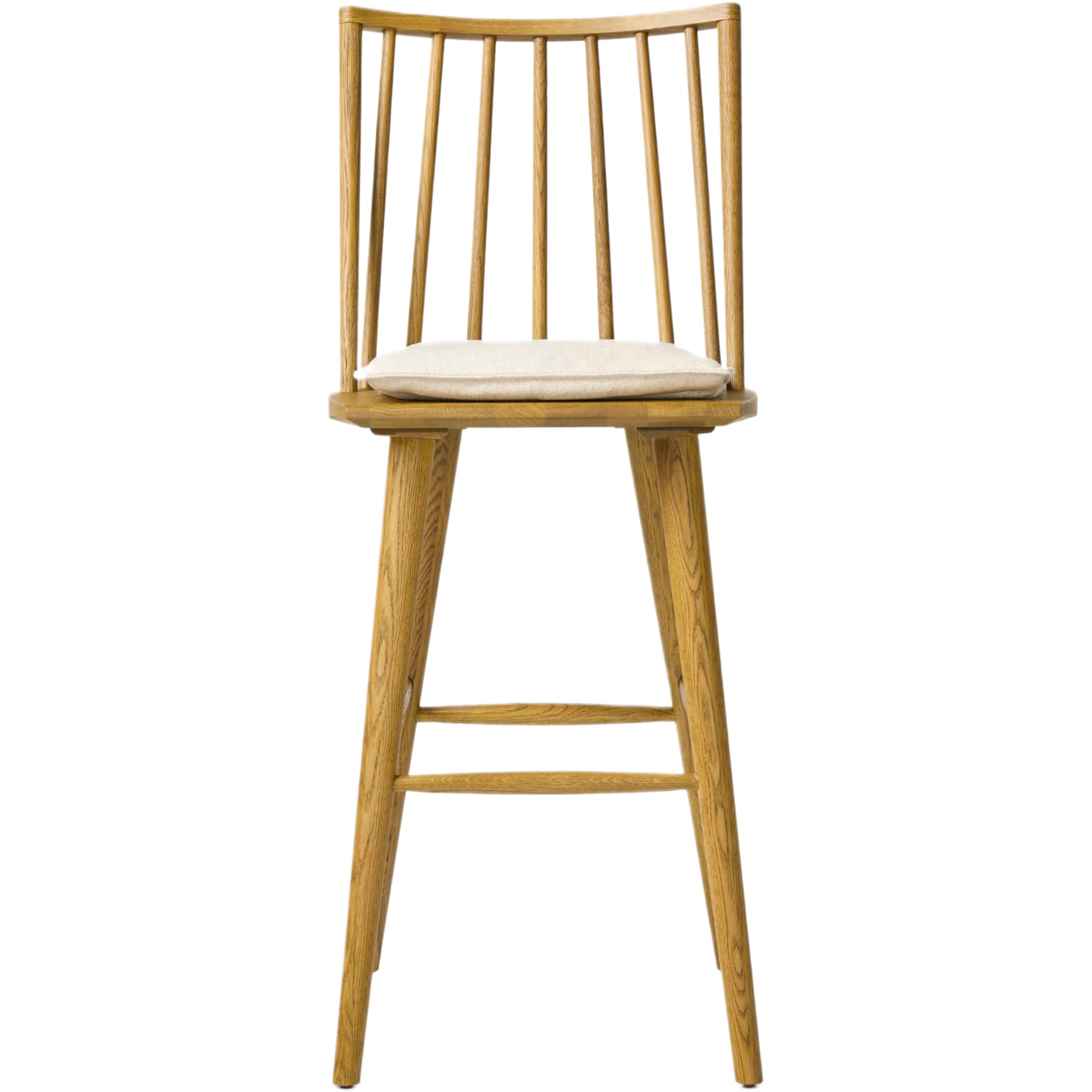 - Antwerp Natural, a modern reinterpretation of the classic Windsor design. This tall and elegant stool is meticulously wire-brushed to accentuate the natural cathedral graining of oak, offering a sophisticated yet contemporary aesthetic. The addition of a loose seat cushion provides a delightful contrast and ensures comfort, making it an ideal choice for any bar or counter setting. Experience the perfect blend of tradition and modernity with this exquisite piece.
