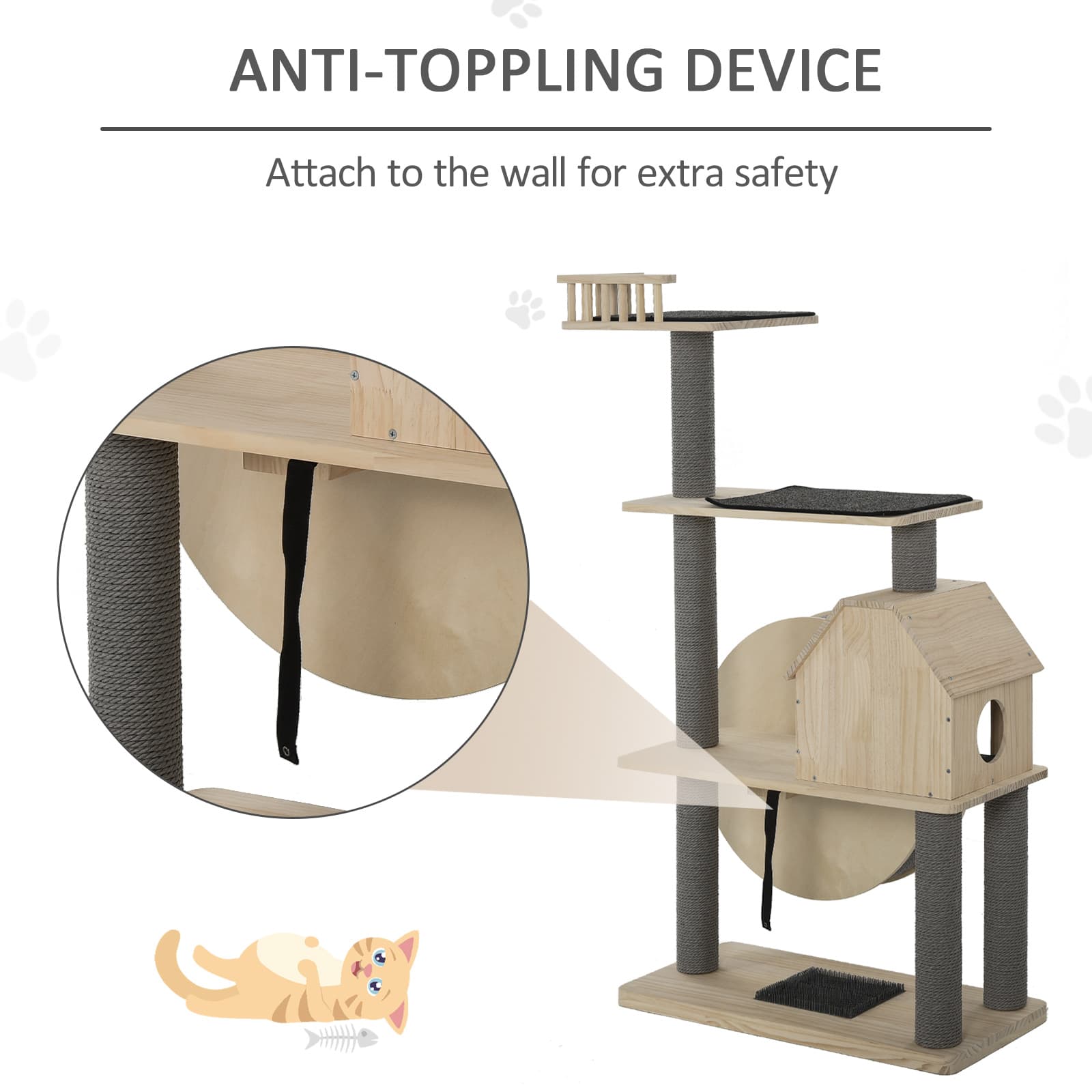 Is your furniture constantly getting scratched? Entertain your cats with the PawHut cat tree, complete with exciting activities for them. It has multiple platforms for resting and sunbathing, making it ideal for homes with multiple cats. The unique circle runner is perfect for playtime and exercise. Scratchers on the tower help alleviate your cat's need to claw and climb, protecting your carpets and furniture. It's a comfortable haven for your furry friend to relax, play, and exercise all day.