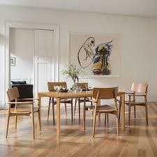 LuxenHome Oak Veneer MDF Wood 6-Person Rectangle Dining Table with Rubberwood Legs