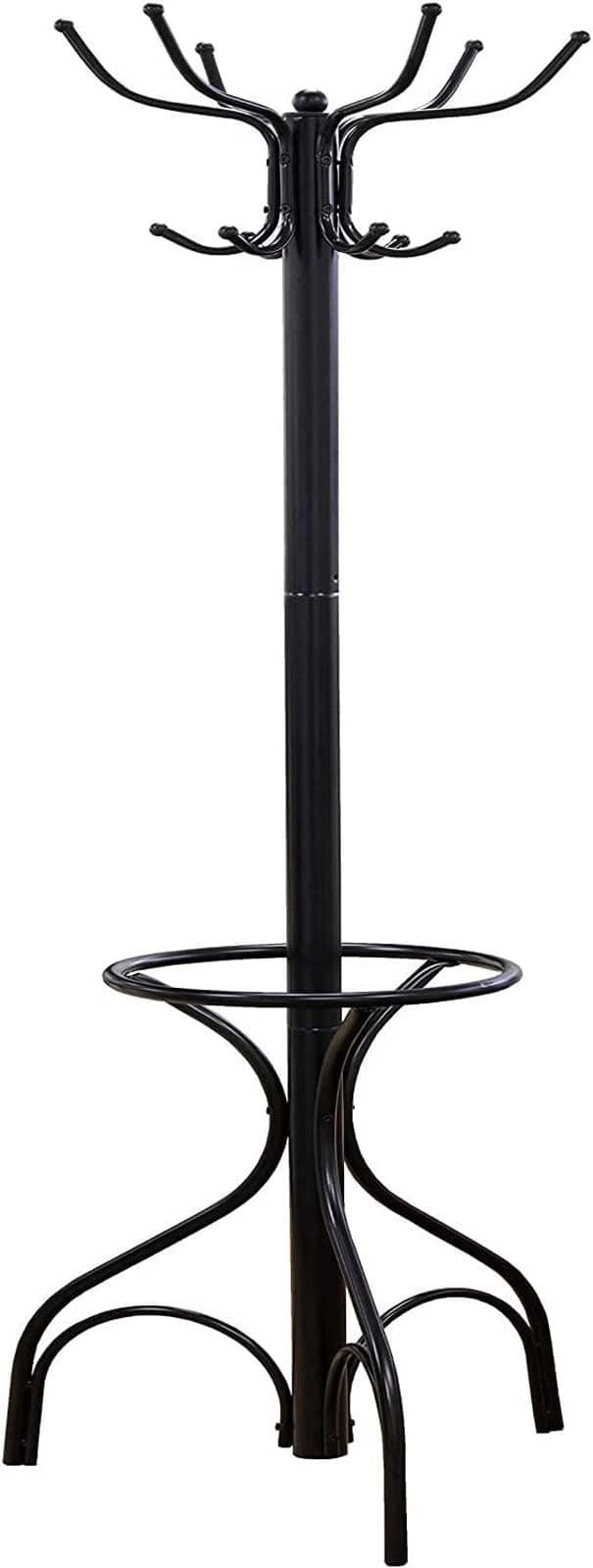 Simple structure, easy to assemble. This hall tree can well organize your daily wear clothes, hats, handbags. 8 Hooks. Black Color.