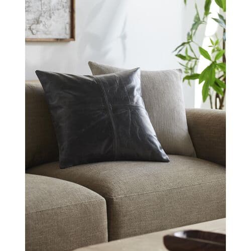 Elvaris 20"x20" Leather Accent Pillow | Cushion, Bolster - Gray
