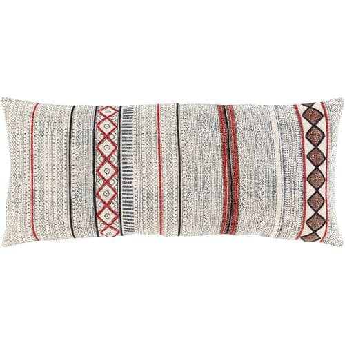 Kallea Block Print 14"x32" Lumbar Pillow - Red/White | Cushion, Bolster - Brown