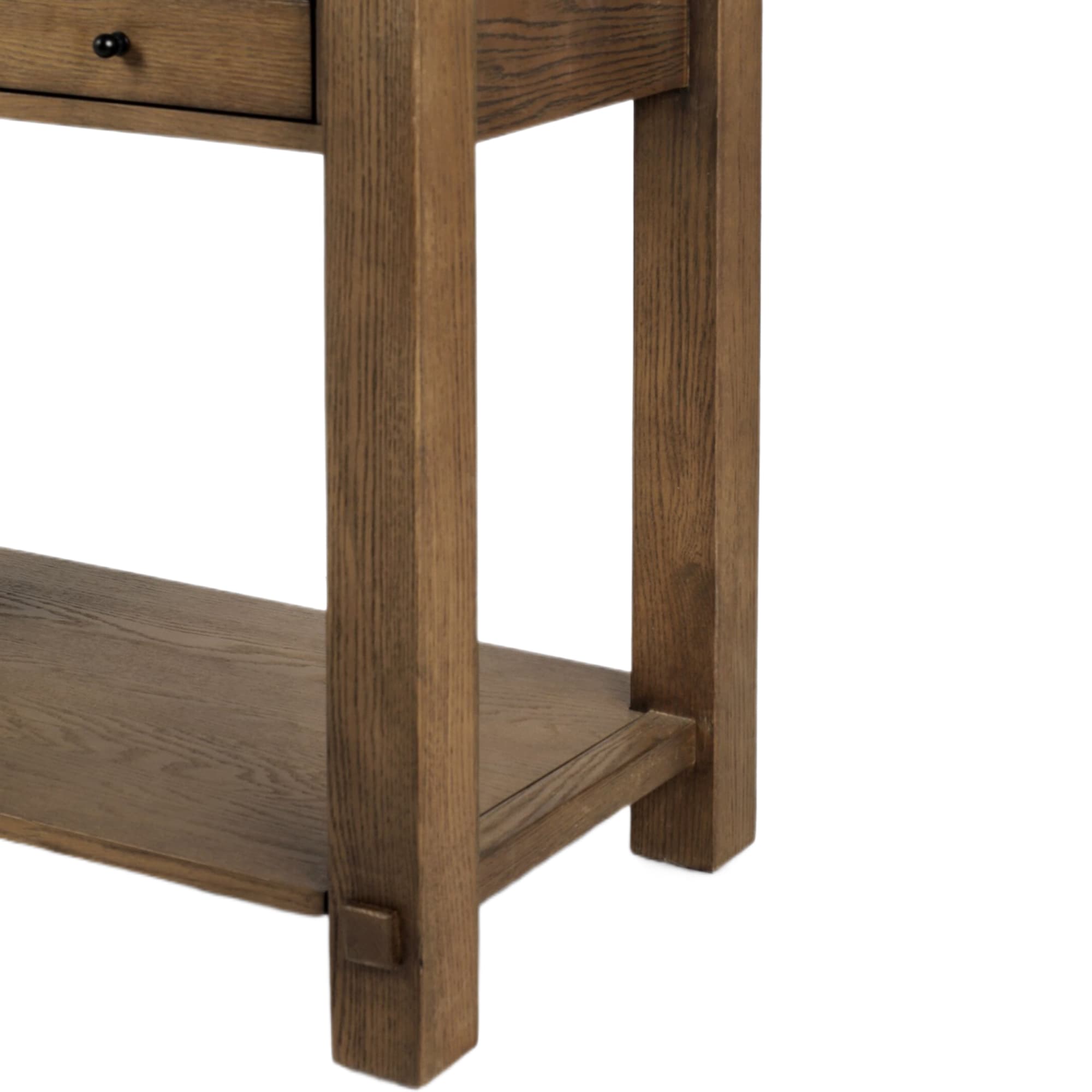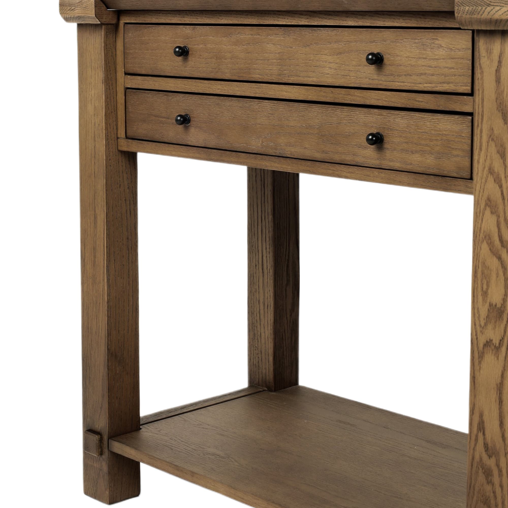 The Ottilie Console Table is a masterful blend of functionality and style, crafted with a focus on storage and design. Made from warm oak with iron accents, it features six drawers and an open lower shelf, offering endless possibilities for organization and display. The exposed joint details on the legs and shelving add an elevated, artisanal touch, making it a perfect addition to any space.