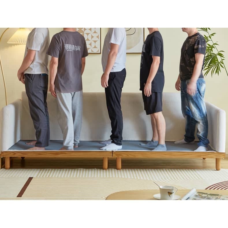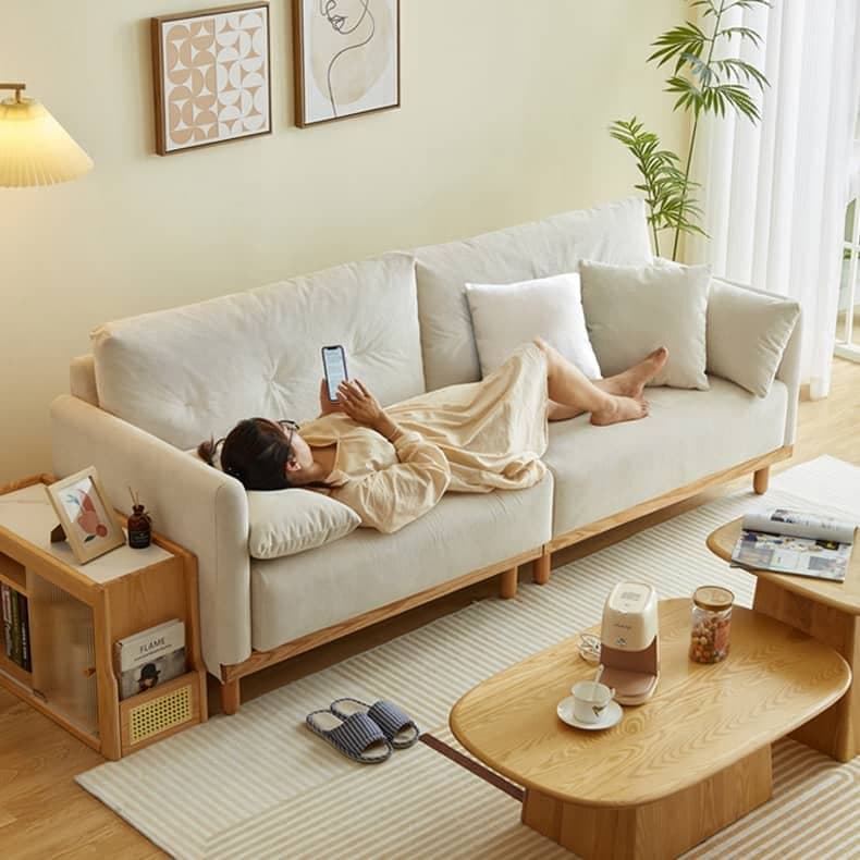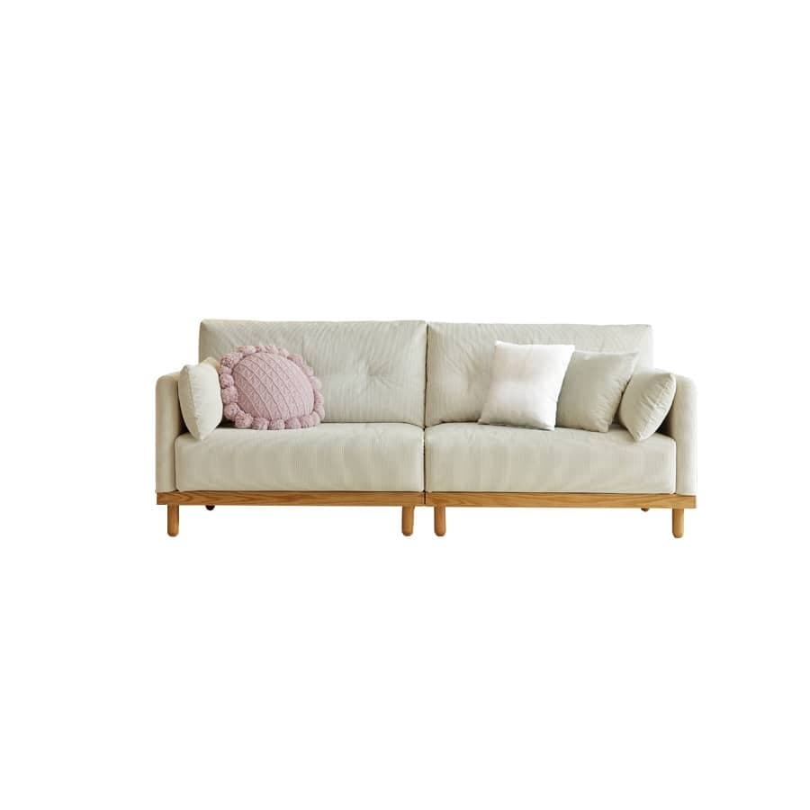 Elegant Beige Corduroy Sofa with Natural Oak and Pine Wood Frame - Luxurious Goose Down Filling hmyf-1274