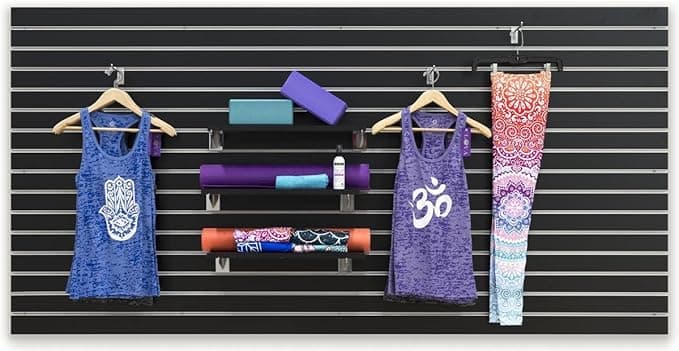 Displays2go, Slat Board Display Panel, Sold 1 Piece per Unit, MDF and Melamine Construction – Black Finish, Silver Hardware (SLWLM48BLK)