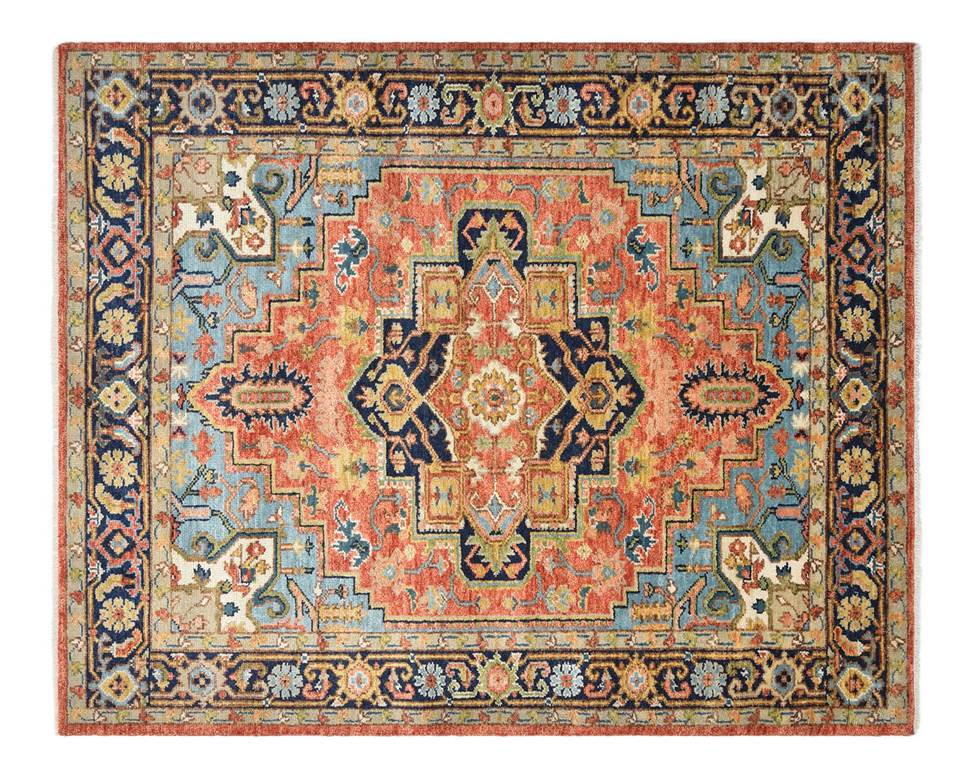 Persian rug-making at its finest inspired the rich colors, elaborate geometric motifs, and botanical detailing of the Serapi collection. With as many as 100 knots per inch, these handcrafted rugs are as durable as they are visually stunning, and they will maintain their time-honored allure for years, if not generations.