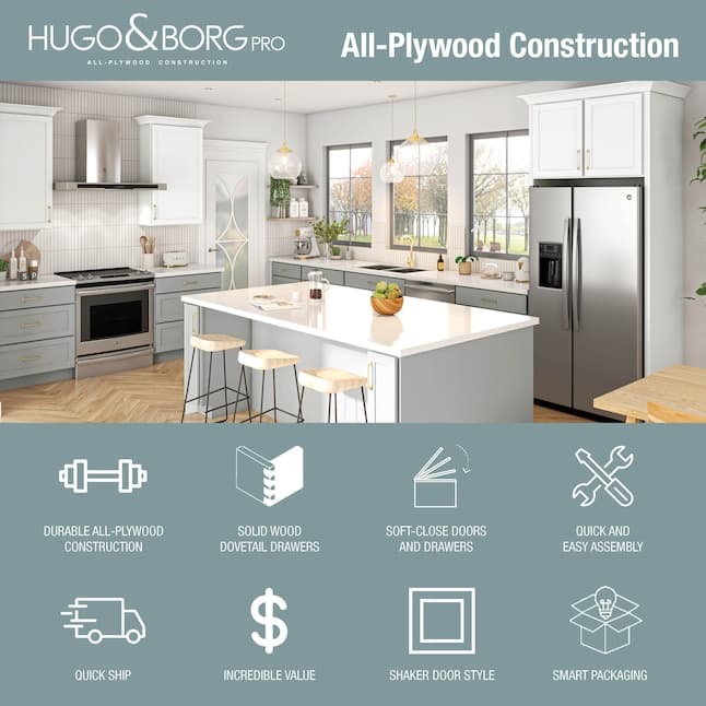 Shop Hugo&Borg PRO Glendale 36-in W x 30-in H x 12-in D Pure White Wall Ready to assemble (RTA) Plywood Cabinet (Recessed Panel Shaker) in the Kitchen Cabinets department at Lowe's.com. Explore the Hugo&Borg Pro All-Plywood Construction collection, showcasing our quick-assembly system equipped with pre-installed hardware for a remarkably swift and effortless construction process.
