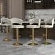 Whether drawn up to a kitchen island for a dine-and-dash breakfast nook or rounding out a casual dining ensemble, bar stools are a versatile seating solution in any home. It's crafted from an upholstered seat founded on a gold-plated pedestal base. With 360° swivel seating and an adjustable seat height, this piece can easily be adjusted to suit your home. This adjustable-height barstool is an excellent choice when you need a versatile seating option for the kitchen, dining room, bar, or even commercial setting.