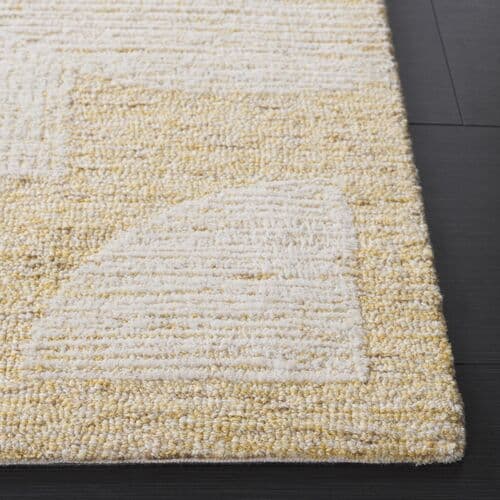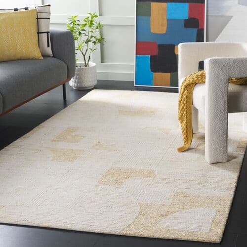 Elevate your space with the timeless charm of our Hand Tufted Wool Pile Rug in a chic Ivory and Green modern-tone palette, carefully crafted in the bustling workshops of India. This 3' X 5' small rectangle area rug boasts a subtle yet striking pattern that elegantly combines contemporary styling with the luxurious feel of a dense woolen pile. Hand-tufted with precision and care, this rug features a height of 1/2" that provides just the right amount of plush underfoot comfort without compromising on style. The uniquely modern design, visible in the image, showcases abstract geometric shapes that blend seamlessly in a serene ivory backdrop, highlighted by tasteful green accents to infuse a breath of fresh air into any room. Whether you are looking to create a focal point in your living room, bedroom, or study, this modern-style rug with its exceptional craftsmanship and premium materials is sure to be an investment in luxury and aesthetic appeal, promising durability and comfort for years to come. Key Features: