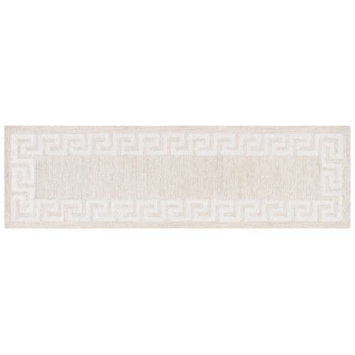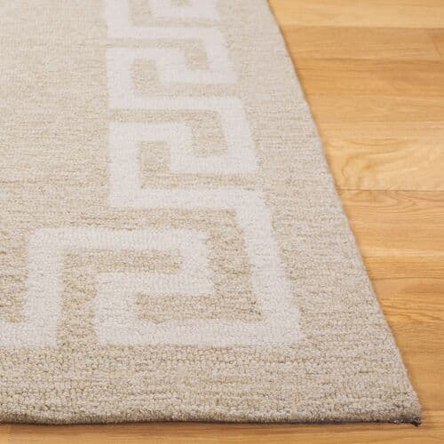 Elevate your living space with the timeless sophistication of our Beige/Ivory Area Rug. Skillfully handtufted in the artisan-rich regions of India, this rug is a testament to traditional craftsmanship fused with modern aesthetic. Designed to fit seamlessly into any interior, this small rectangle area rug measures 3 feet by 5 feet, boasting a comfortable height of 1/2 inch that's ideal underfoot. Crafted from a luxurious blend of 80% wool and 20% cotton, it offers both durability and softness, making it perfect for high-traffic areas or cozy nooks. The elegant beige hue serves as an inviting backdrop to the striking ivory Greek key border pattern, adding a touch of classical intrigue to this piece. Whether placed in your living room, bedroom, or study, this rug's understated color palette and sophisticated design will complement any decor while providing a warm and inviting atmosphere. Bring home a piece of Indian heritage and enjoy the blend of comfort, quality, and style.
