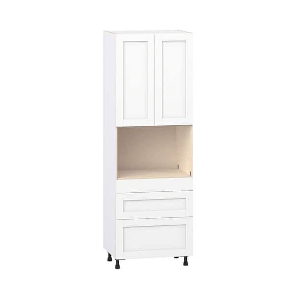 Milton 30 in. W x 24 in D x 89.5 in H Assembled Shaker Microwave Pantry Kitchen Cabinet in Bright White with 3 Drawers