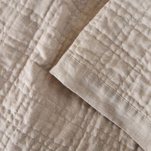 Embrace Natural Luxury with the Owen Linen and Cotton Coverlet. Surround yourself with nature��s finest materials. The quilted square pattern on this linen and cotton coverlet offers a refined, textured design that gives your bedding subtle depth and dimension. Its uniform stitches create a clean, structured aesthetic, while the softness of the quilting ensures endless comfortable nights. There’s nothing quite like this quilted square pattern coverlet collection. King, Standard, and large Euro shams sold separately.