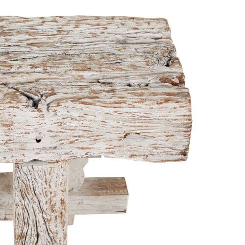 The Holland Bench is a sustainable piece, crafted from aged reclaimed wood that has been whitewashed, giving its surfaces tremendous personality. The trestle design employs mortise and tenon joinery, ensuring that no two pieces are exactly alike. This piece is intended for indoor use only.