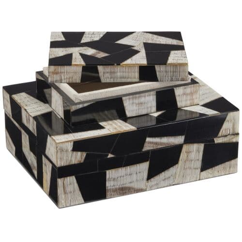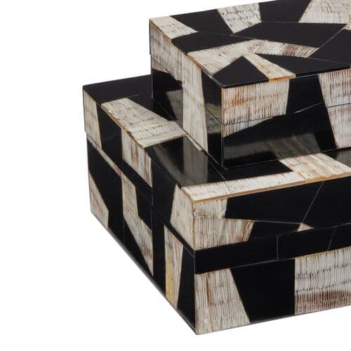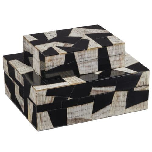 Set of 2 Bindu Horn Boxes - Natural/Black - Currey & Company