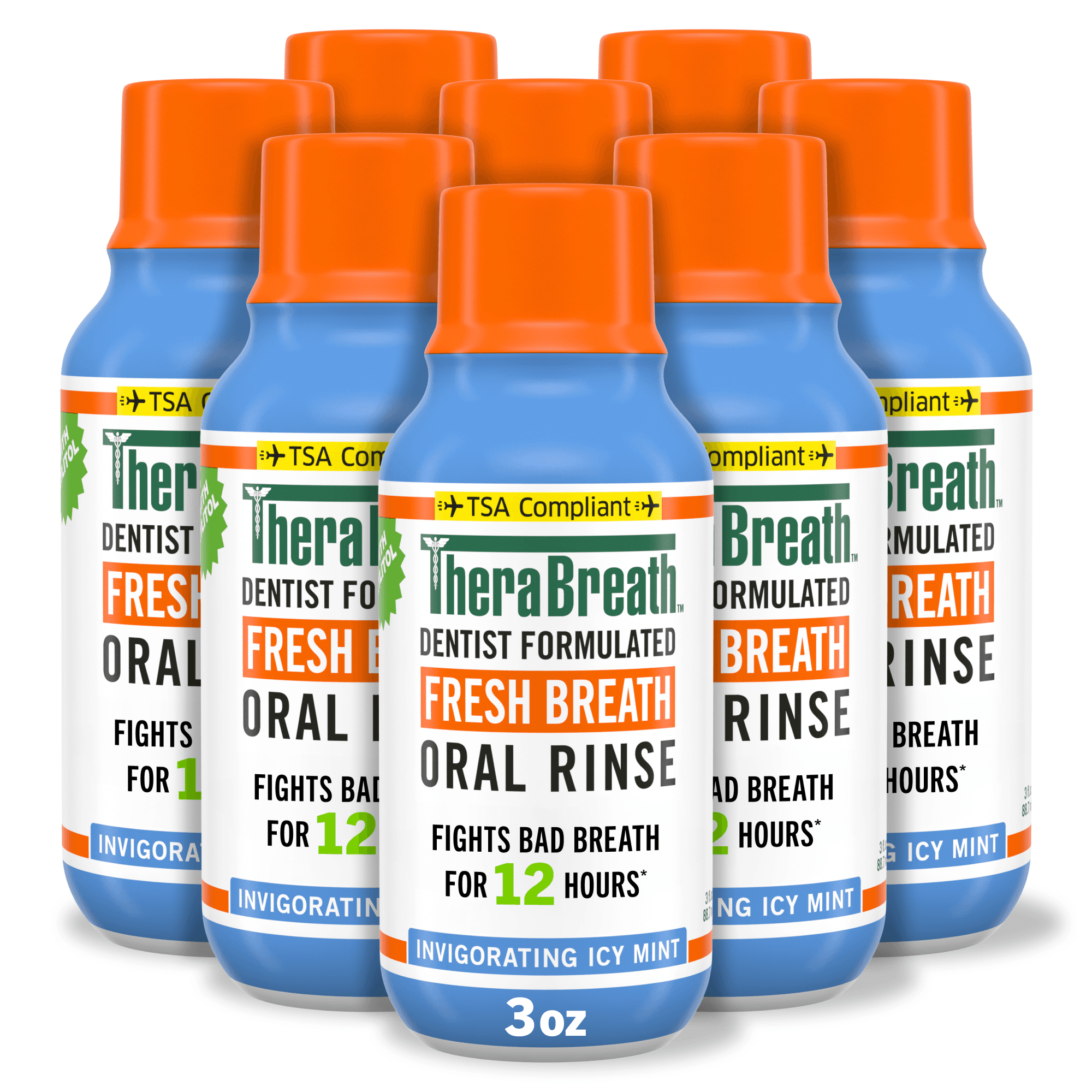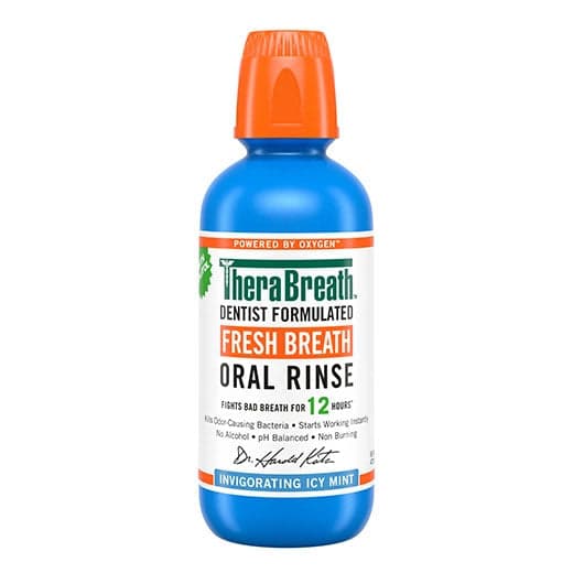 Experience the refreshing power of TheraBreath Icy Mint Oral Rinse. This mouthwash fights bad breath and leaves your mouth feeling icy cool.