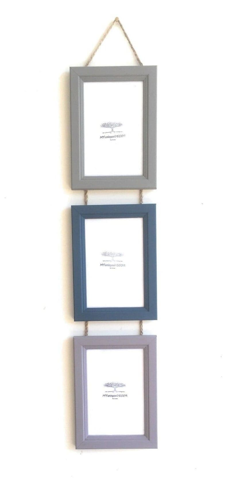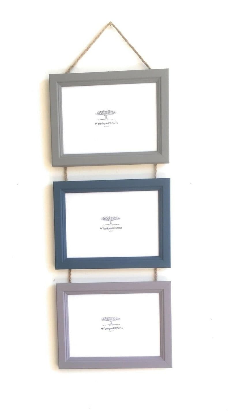 This Picture Frames item by MYuniqueDECORuk has 785 favourites from Etsy shoppers. Dispatched from United Kingdom. Listed on 16 Aug, 2025. Wall Hanging Photo Picture Frame. This triple photo picture frame is a unique, handmade piece, crafted from top-quality solid wood and hand-painted with three muted colours from the Farrow and Ball range: Moles Breath, Stiffkey Blue and Brassica. They are suspended from and linked together with hand plaited, natural jute twine and feature 'Clear as Glass' Perspex fronts, making them easy to hang.