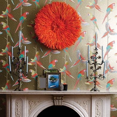 The tropical birds with colourful metallic plumage are set on contrasting grounds, named after a type of parrot found in Latin America.Matthew Williamson conjures up the glamour and excitement of pre-revolutionary Cuba in the era of Hemingway and his contemporaries in this exotic collection of decorative wall coverings all printed on the easy-to-hang non woven base. Material: Non-woven, washable Pattern Match: Quarter Drop Pattern Repeat: 27" Roll Dimensions: 20.5" wide x 33 feet long