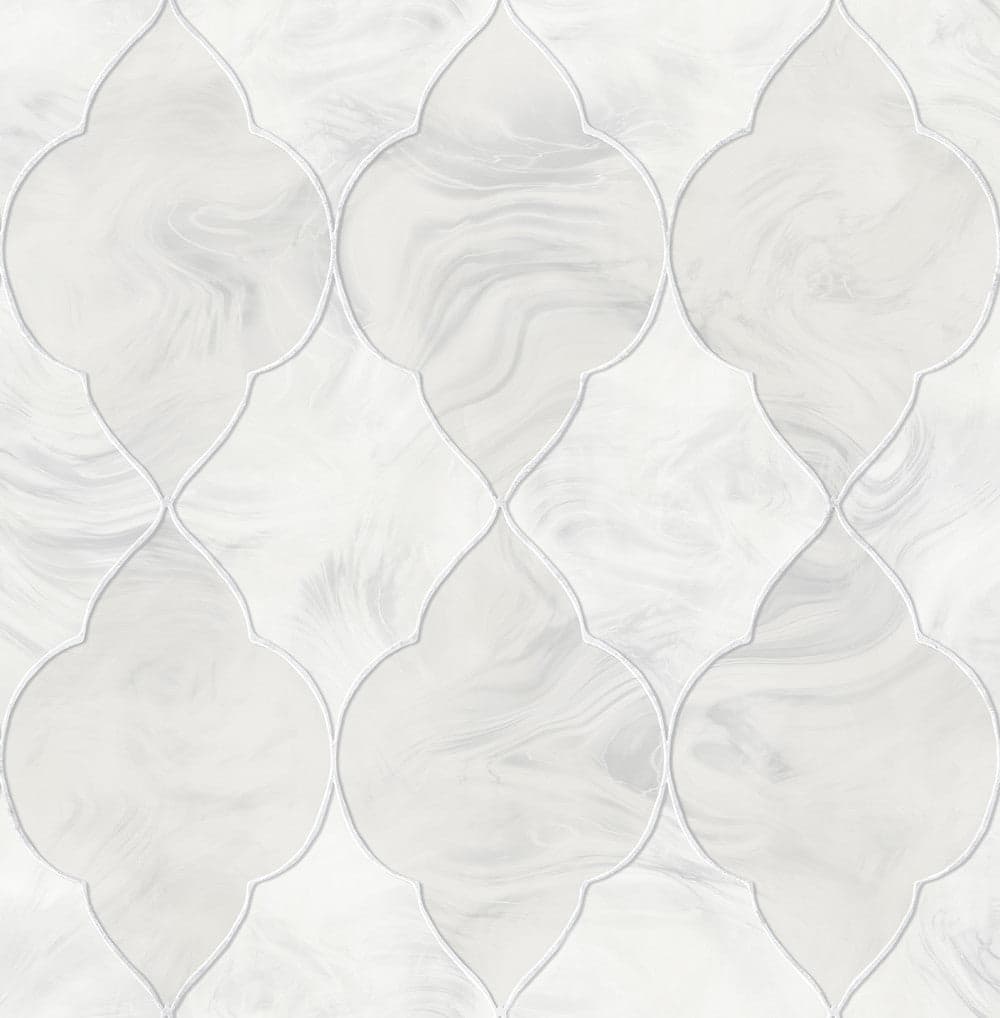 Baroque Glass Wallpaper in Silver, Grey, and Ivory from the Aerial Collection