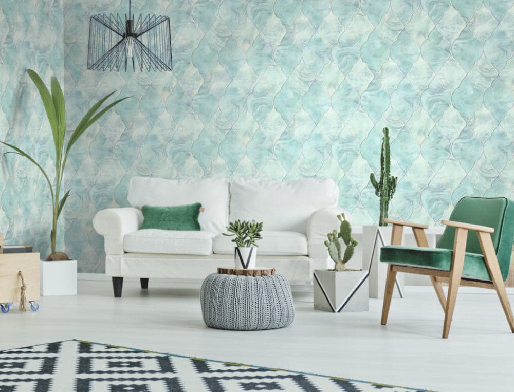 Interwoven luminous clovers forge a strong statement wall. From the Aerial collection by Mayflower Wallpaper. **Second image is a style shot in a different colorway** Material: 100% Paper Acrylic Coated, Semi Gloss Features: Unpasted, Strippable Match Type: Half drop Pattern Repeat: 20.87" Dimensions: Sold as a double-roll covering approximately 56 square feet (20.5 in. Wide x 32.9 ft. Long) of wall area. Please allow 3