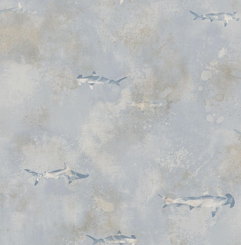 Sharks Wallpaper in Grey, Blue, and Silver from the Aerial Collection