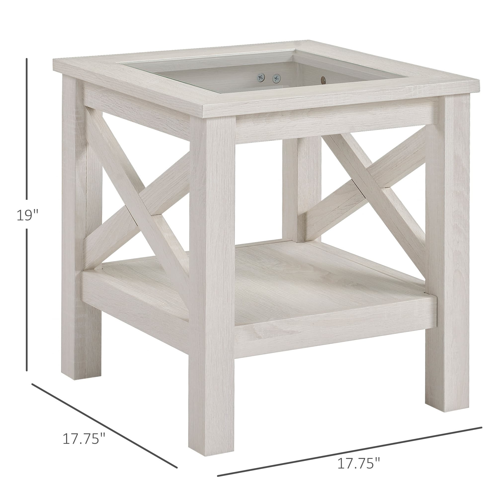 HOMCOM Farmhouse End Table with Glass Top Storage Shelf Sofa Side Table White Oak for Bedroom Living Room | Aosom.com