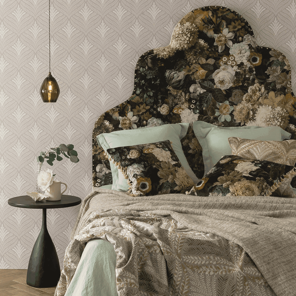 Fern leaves are arranged within a symmetrical leaf shape. From the Mansfield Park collection: This collection of decorative wallcoverings, including two mural designs, offers a modern take on the quintessential English country house, its gardens and surrounding countryside. The collection takes its name from the novel of the celebrated British novelist, Jane Austen. **Second image is a style shot in a different colorway** Material: Non-Woven Features: Unpasted