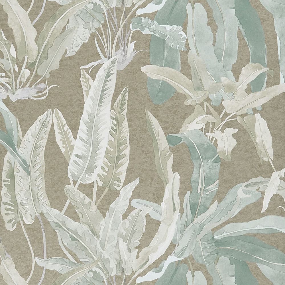 Sample Benmore Wallpaper in Eau De Nil and Gilver from the Ashdown Collection