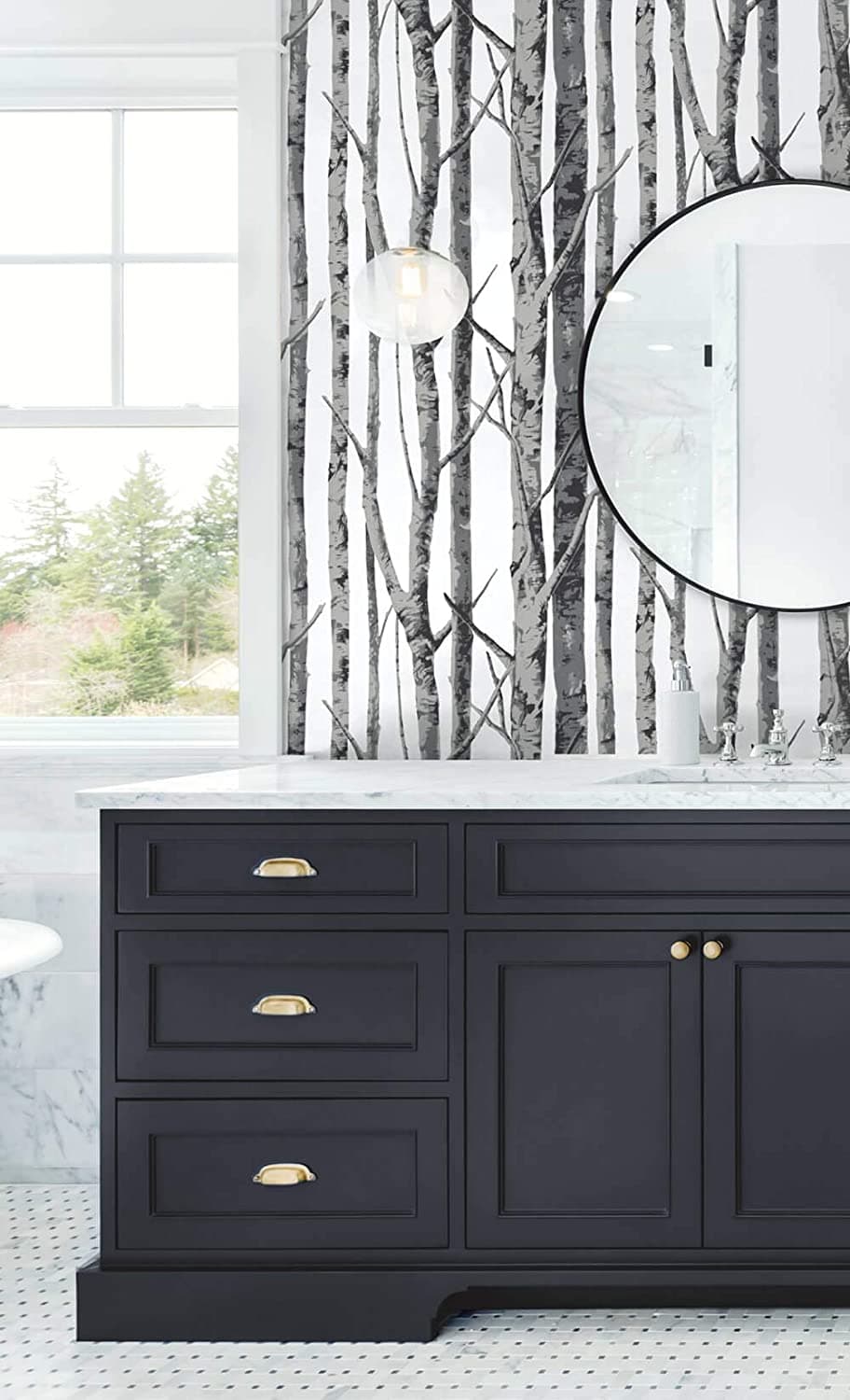 Birch Trees Peel-and-Stick Wallpaper in Monochrome