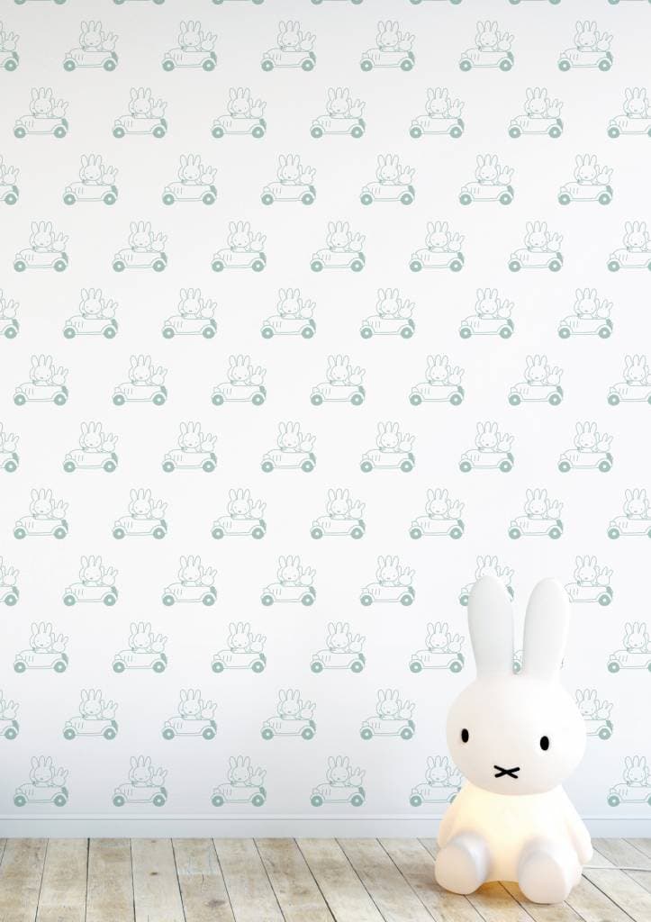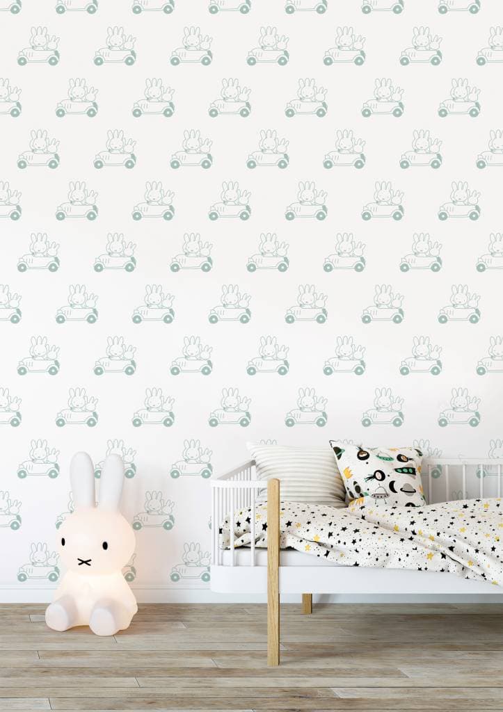 Miffy Cars Kids Wallpaper in Green by KEK Amsterdam