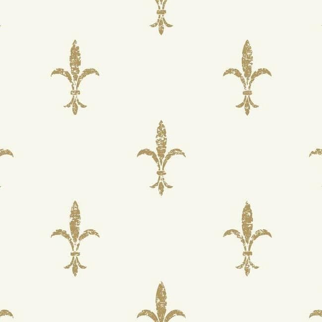 Sample Fleur De Lis Wallpaper in White and Gold from the 24 Karat Collection