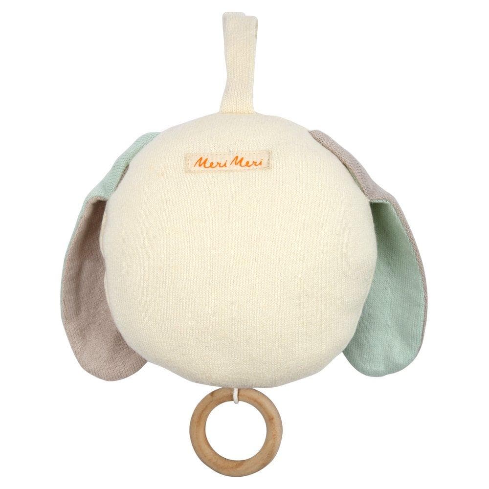 This knitted organic cotton musical dog toy is the perfect way to soothe a little one. Simply pull the smooth wooden ring to play the delightful tune. Beautifully crafted with charming embroidered features and adorable floppy ears. Knitted organic cotton Stitched details & neon thread detail Pull wooden ring to play lullaby Cotton hook & loop fastener for hanging Suitable for ages 0-6 months Product dimensions: 5.75 x 5.25 inches