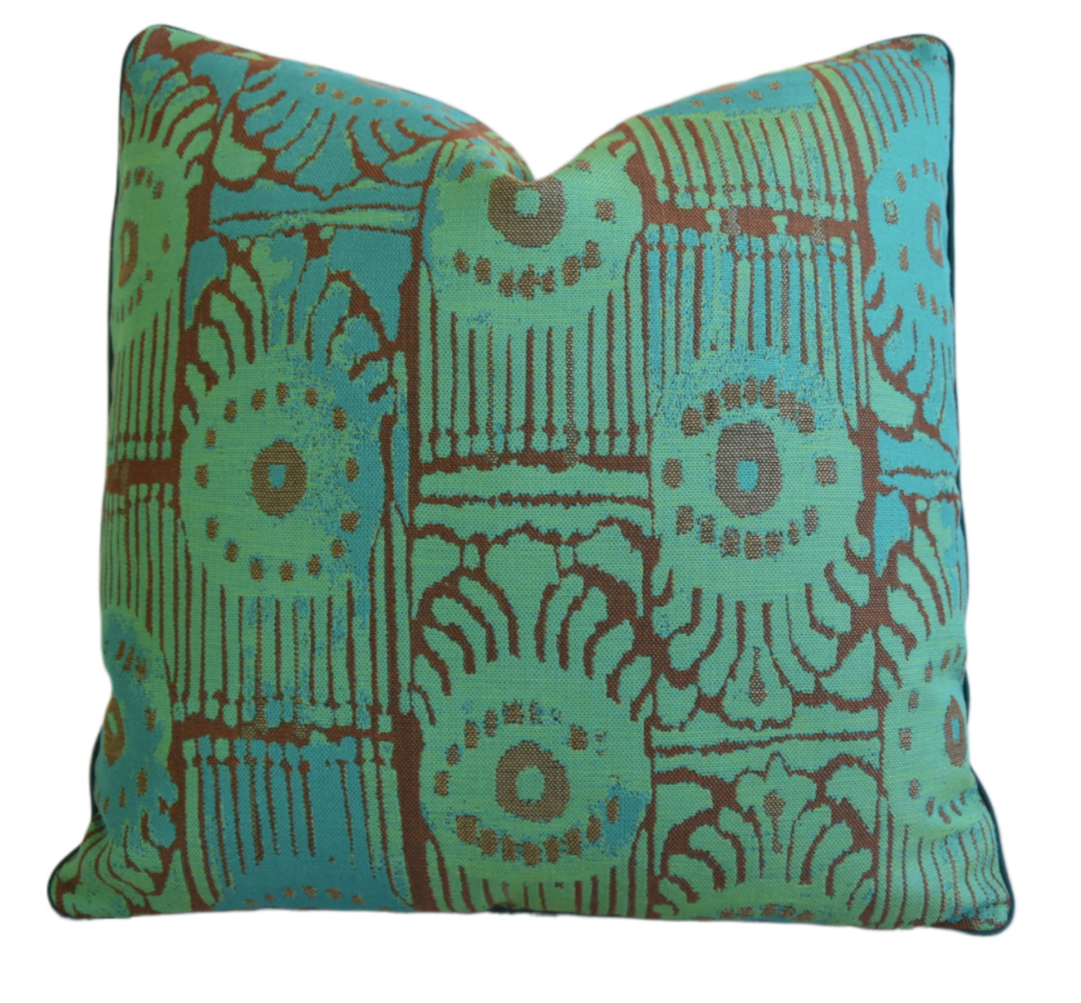 Designer Perennials Green Parrot Pillow | Cushion, Bolster - Custom Tailored