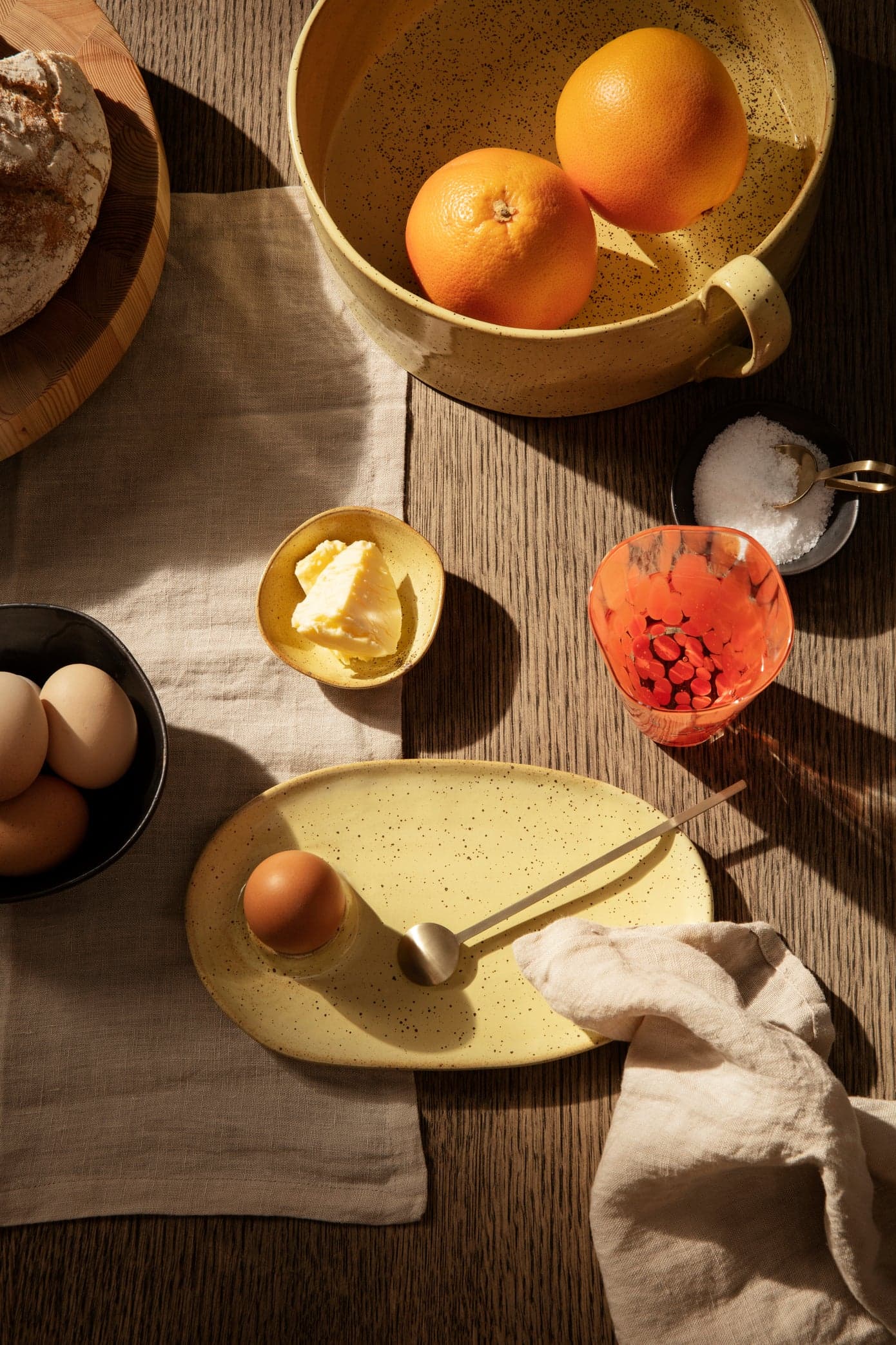 Flow is a series of perfectly imperfect tableware made to modern sensibilities using traditional craftsmanship techniques. All the items are detailed with a semi-matte glaze for a unique expression. Featuring an integrated egg cup, this oval plate is the perfect addition to any breakfast table, with plenty of room for your morning toast as well. The egg cup is indented on the backside, so the plates can be easily stacked when not in use. This product has a unique matte glazing. Cutlery marks may therefore appear with use. Size: W: 9.25 x H: 0.87 x D: 5.51 in Material: Glazed porcelain Care instructions: Dishwasher-safe Attention text: This product has a unique matte glazing. Cutlery marks may appear with use *This item is excluded from sale events and not available for additional discounting or promotional offers.