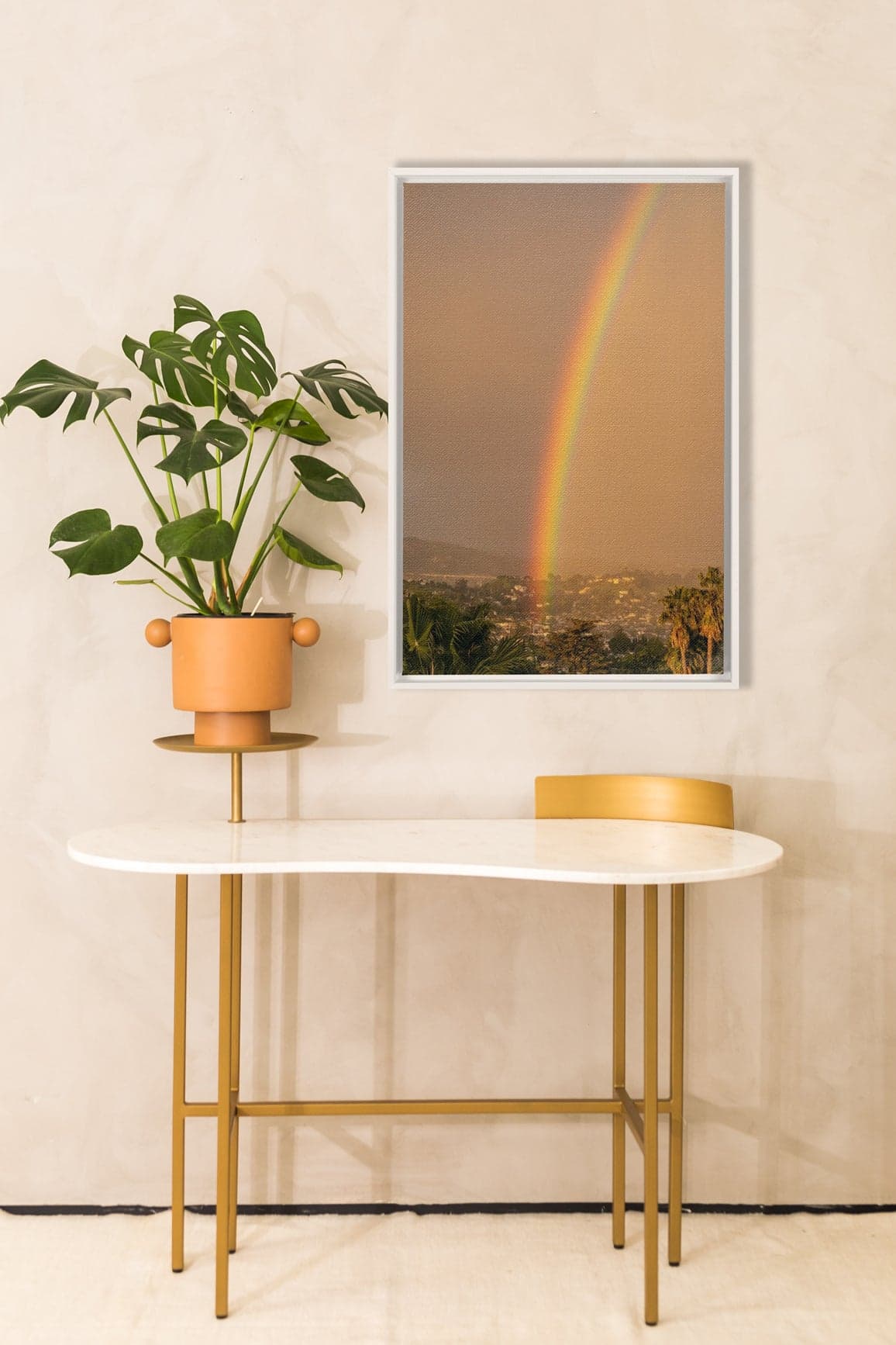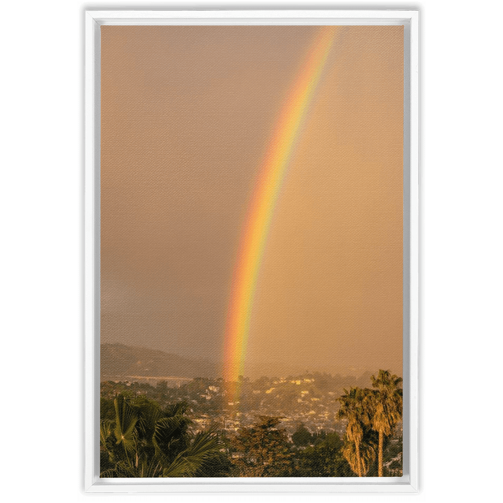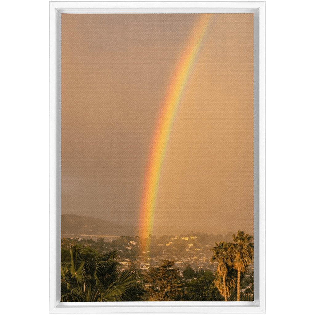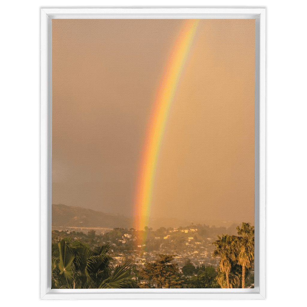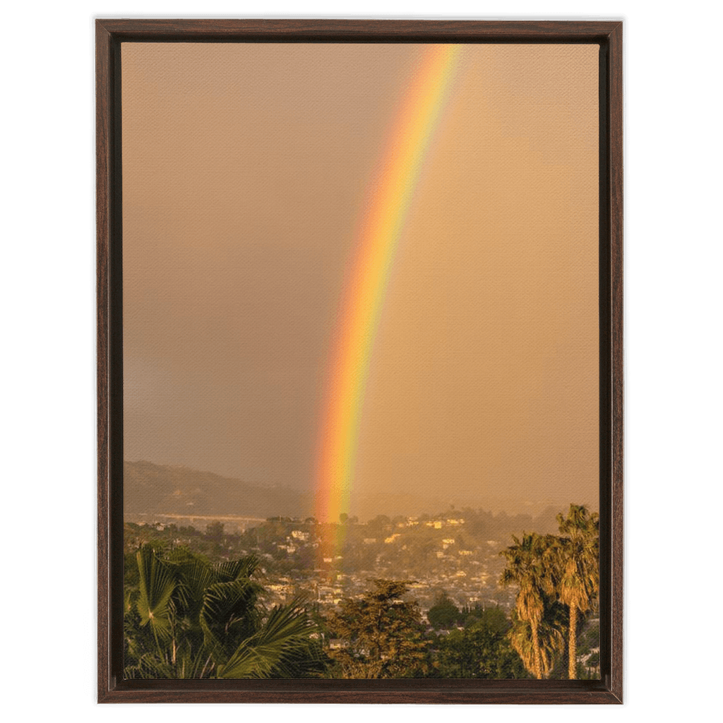 over the rainbow...Ready to hang canvas print media is acid free with a medium texture and scratch-resistant finish. Solid wood frame, fully finished backing, with corner bumpers for level hanging and to protect your wall. Easily wipes clean with a damp cloth.Size reflects print size, frame adds an additional 2" to length and width