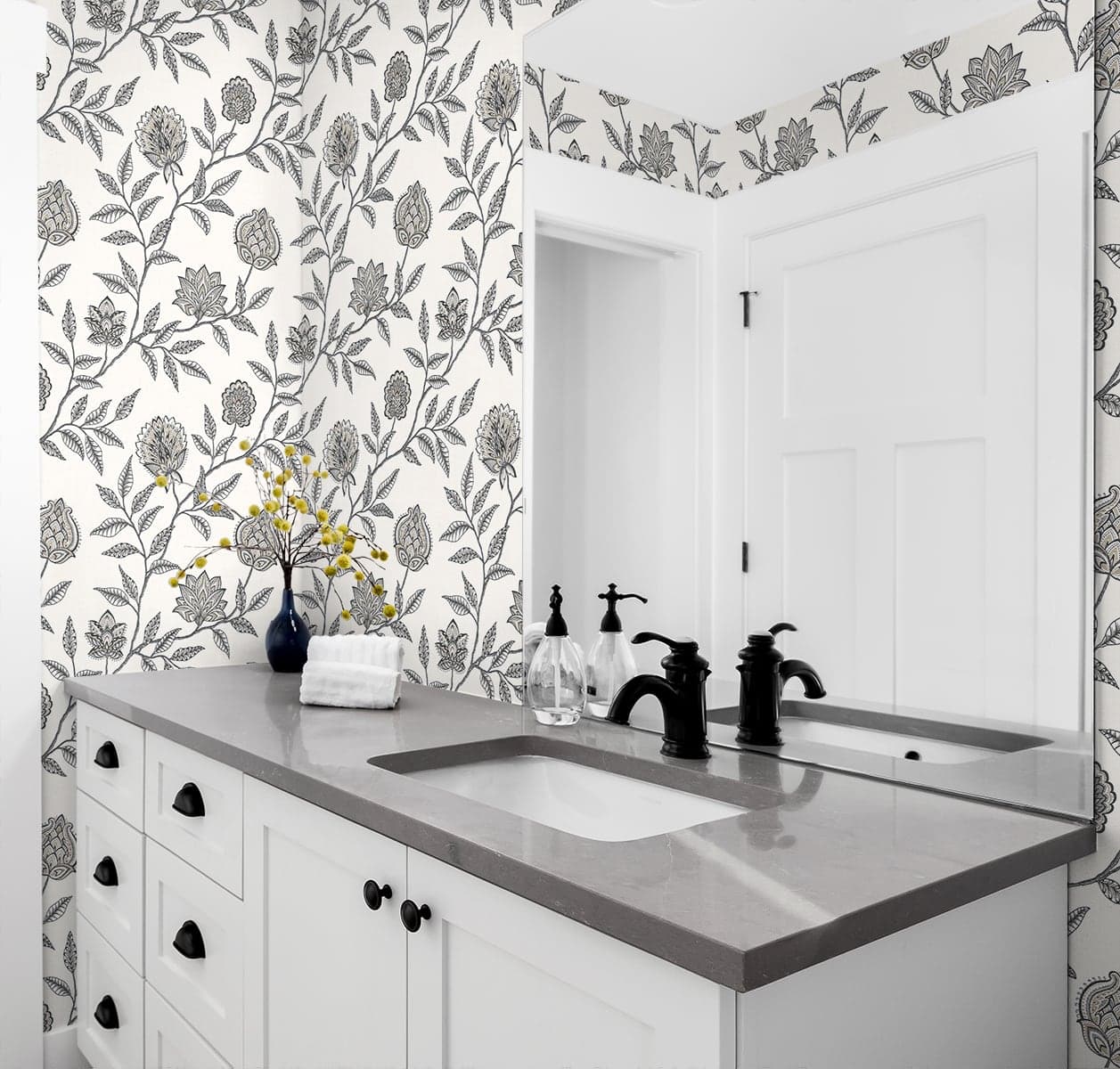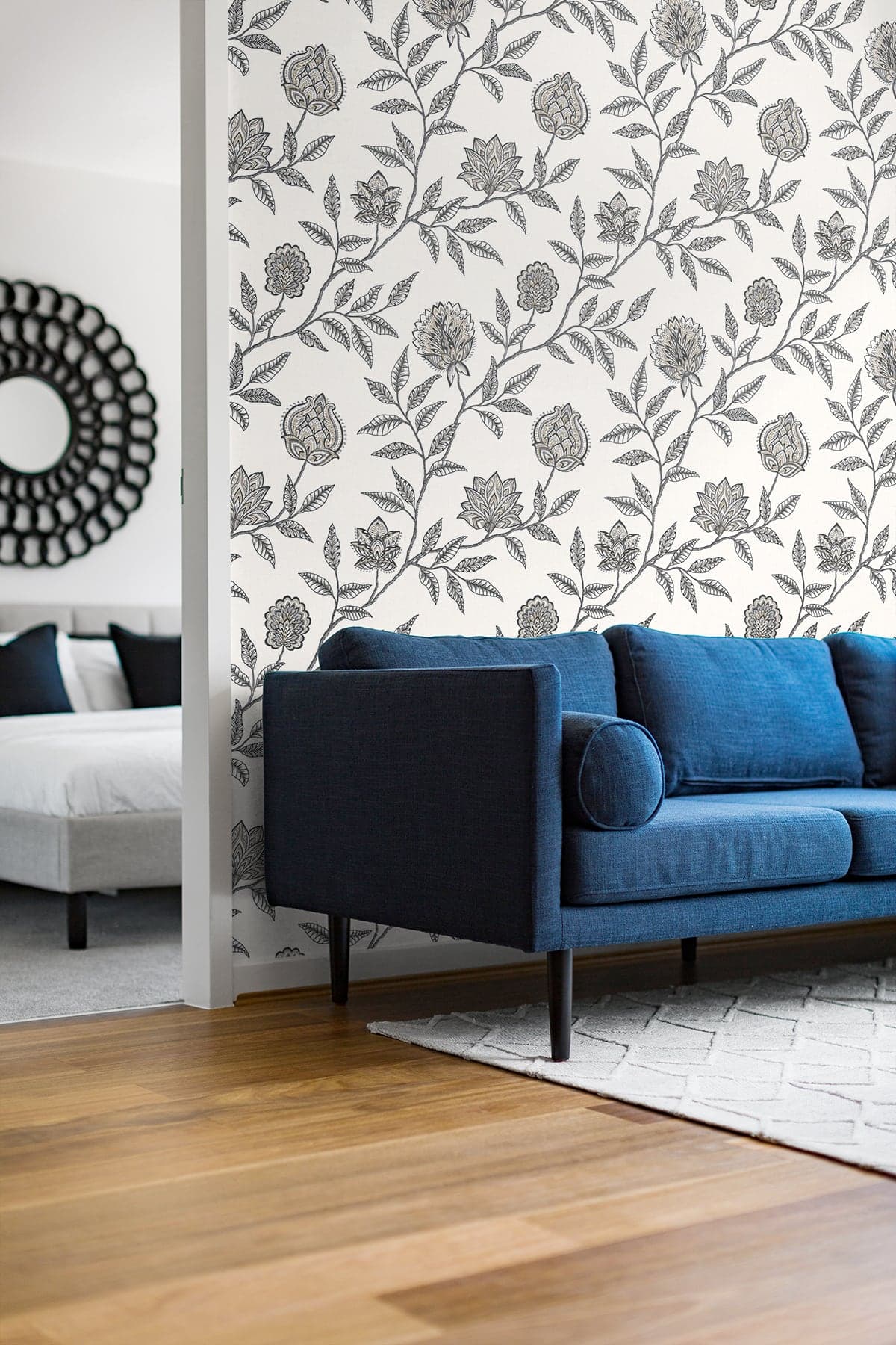 Jaclyn Peel & Stick Wallpaper in Charcoal and Sandstone