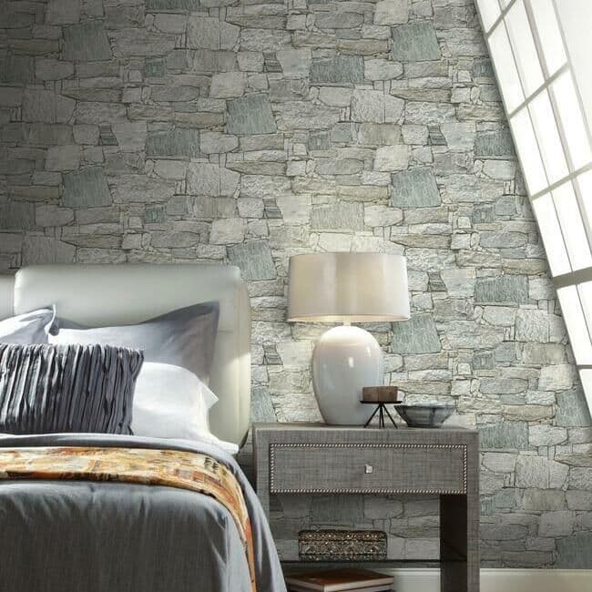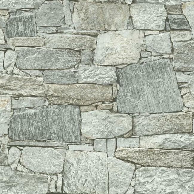 Chateau Stone Peel & Stick Wallpaper in Grey Natural from the Stonecraft Collection
